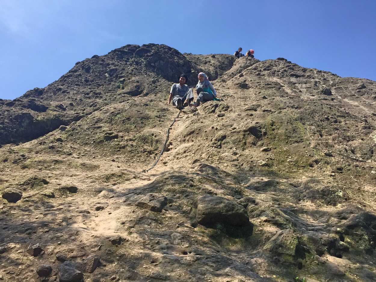 - Sebaiknya mendaki satu persatu, jangan beramai-ramai menggunakan tali karena sepertinya tidak kuat untuk digunakan beramai-ramai