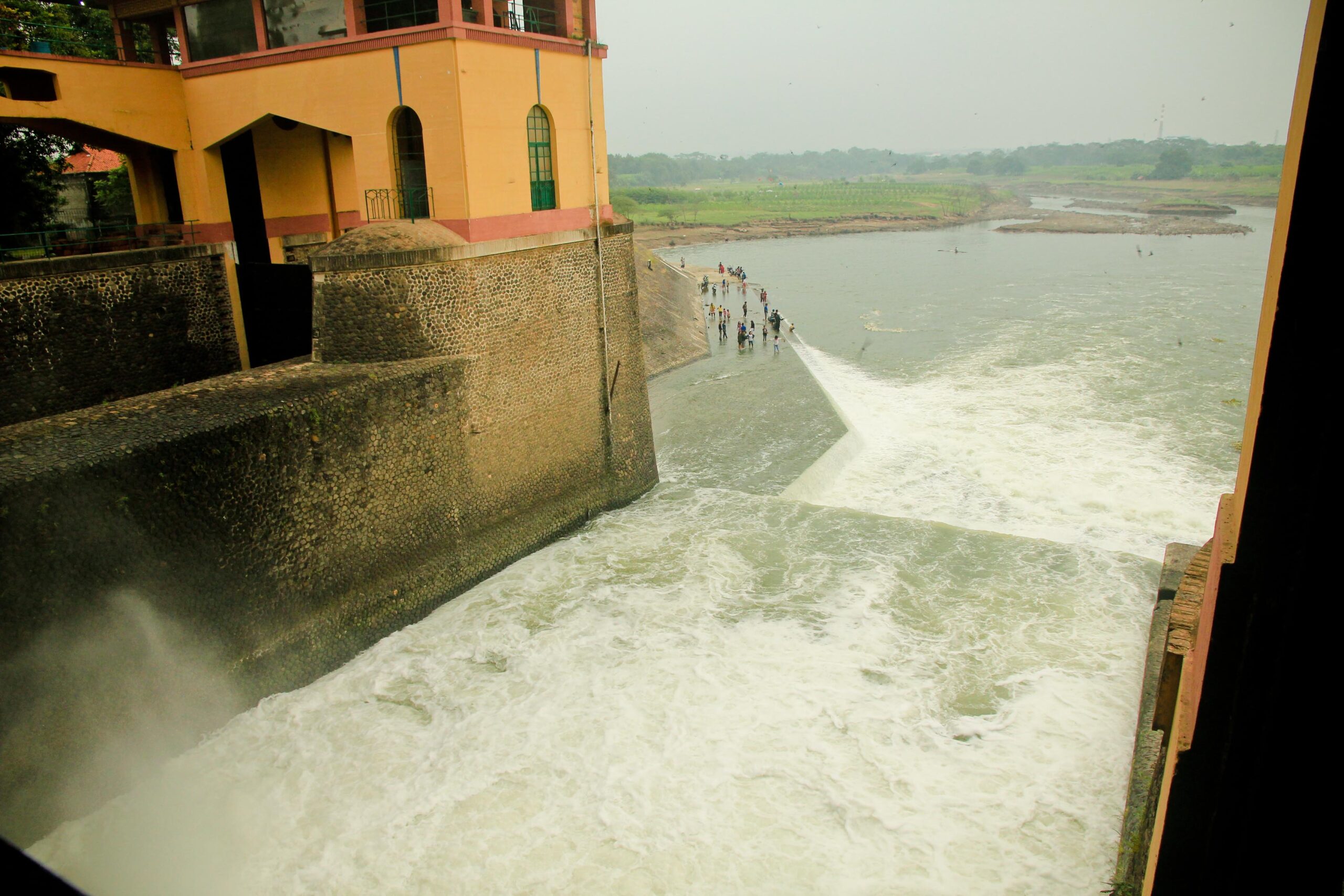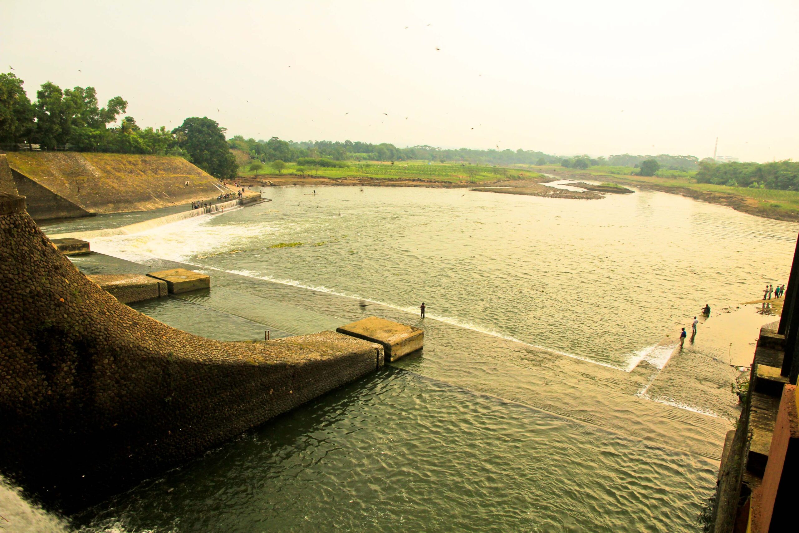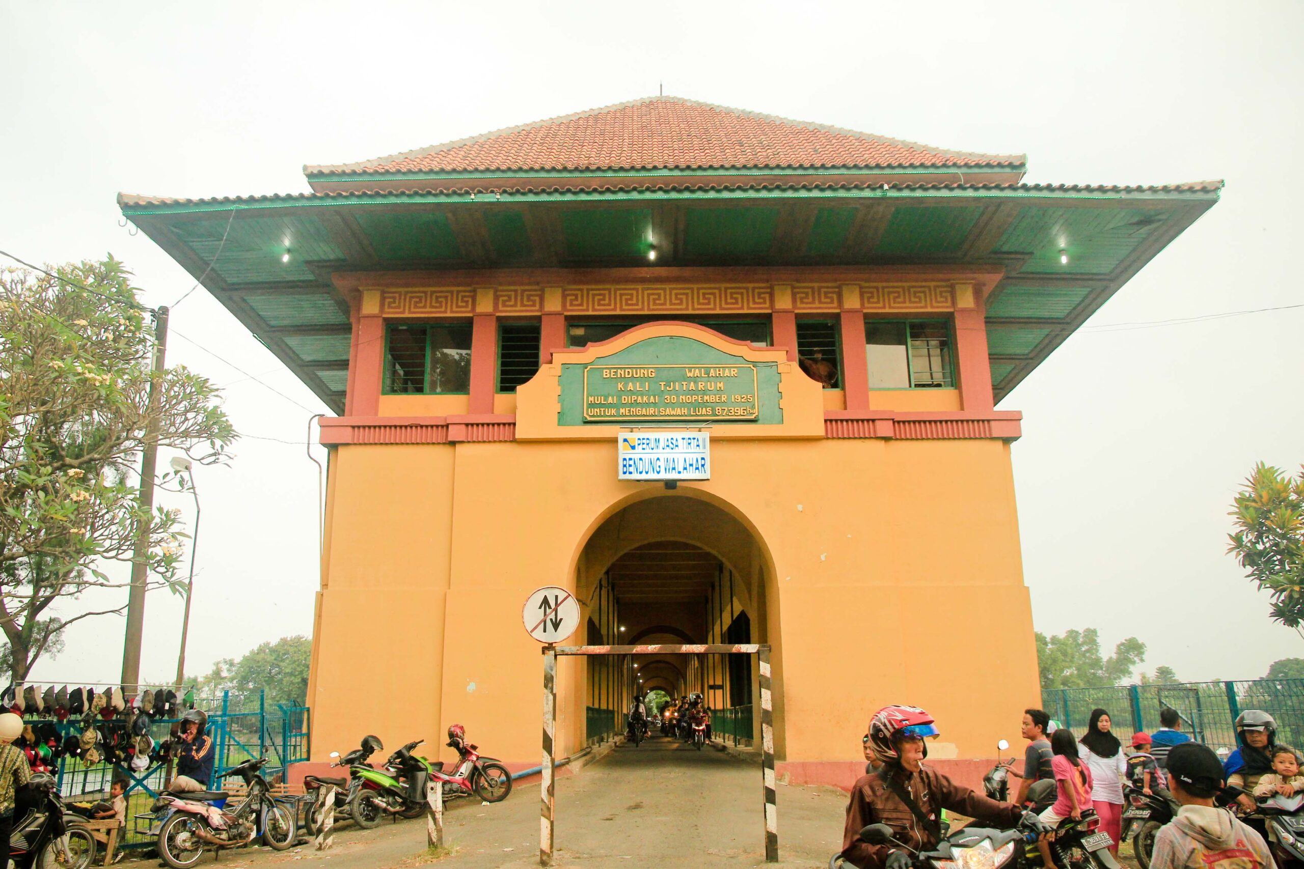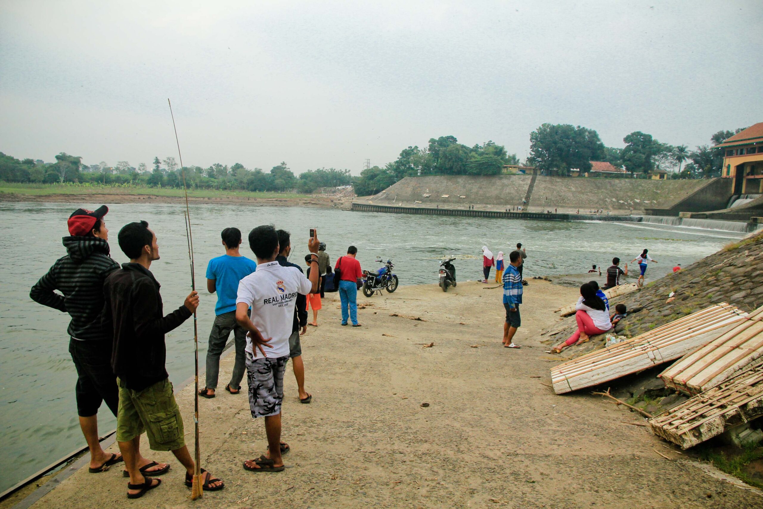 Sesampai di sana kami cukup kagum melihat bendungan yang sudah berdiri sejak awal tahun 1900-an. Berarti bangunan tersebut hampir berusia sekitar seabad. Luar biasa sekali kualitas bangunan zaman Belanda ini. Bangunan yang diperuntukkan untuk irigasi puluhan ribu hektar sawah di sekitar Karawang ini menyimpan debit air yang sangat besar. Di samping bermanfaat untuk pengairan, tempat ini juga bisa menjadi lahan pencaharian bagi warga setempat untuk mencari ikan dan berjualan di sekitar bendungan. Tengoklah gambar-gambarnya berikut ini.