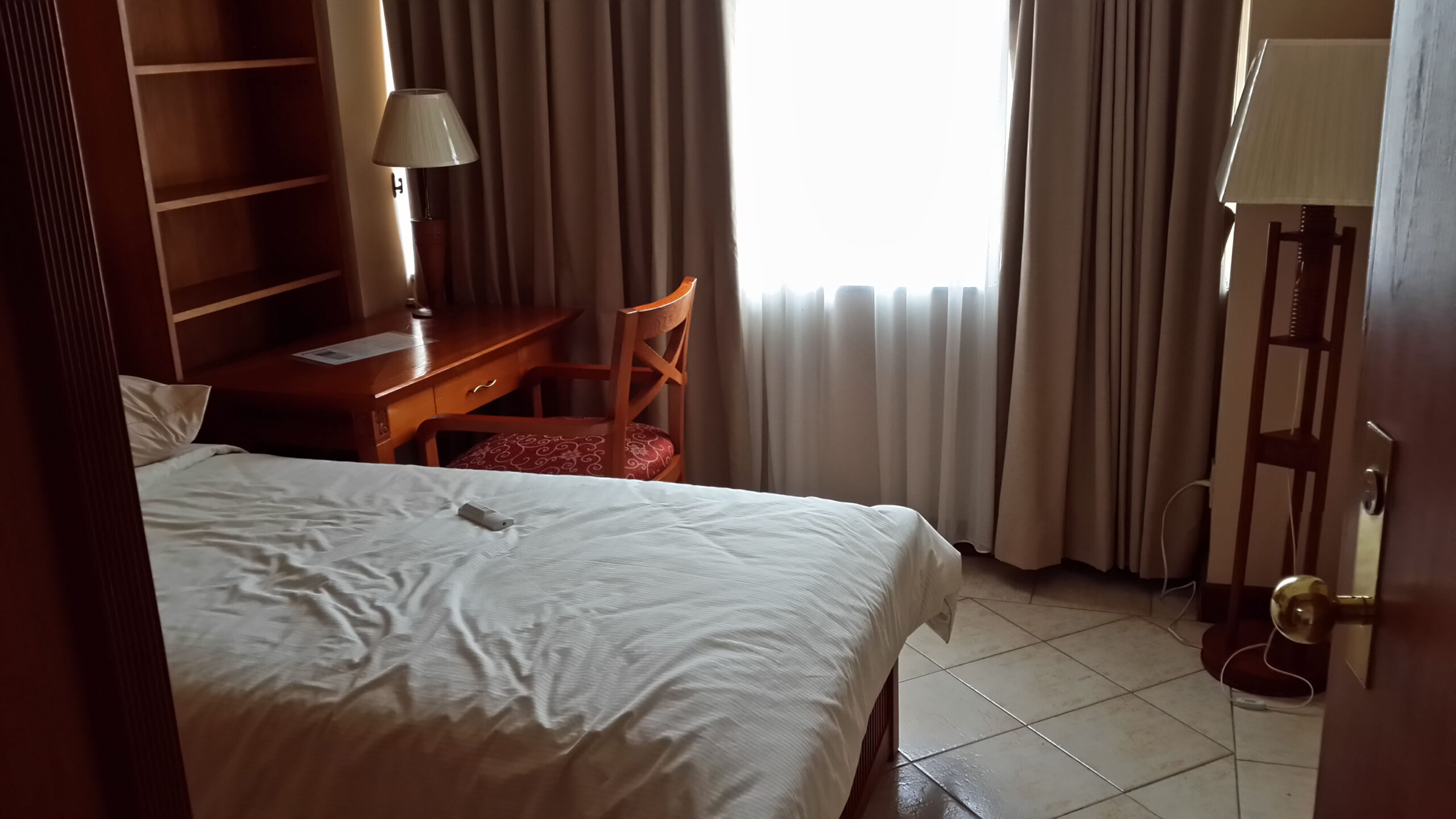 Masukan dari sahabatku adalah Citra Grand Hotel di Teluk Jambe yang sangat dekat dari perumnas Teluk Jambe. Sayang, kamar yang cukup untuk kami berempat semuanya telah dipesan – maklum hotel baru empat bulan dibuka. Akhirnya berdasarkan masukan dari karyawan hotel disarankan ke Hotel Delonix. Setelah telpon 108 untuk mencari tahu nomor telepon hotel tersebut (dari internet nomornya tidak bisa dihubungi), saya menanyakan tarif dan fasilitas dan kapasitas kamarnya. Harganya cukup fantastis, bisa dilihat sendiri di Agoda. Akhirnya kami mencoba ke sana. Rupanya Delonix masuknya cukup dalam, sekitar 100 meter sebelum pintu masuk tol Karawang Barat (kalau dari Teluk Jambe). Sebelum sampai di sebelah kiriku ada bangunan mirip hotel, namanya Puri KIIC. Iseng bertanya kepada satpamnya, dibilang ini juga hotel. Akhirnya sebelum ke Delonix saya menyempatkan untuk melihat kamar, tarif, dan fasilitasnya, untuk perbandingan harga dan fasilitas.