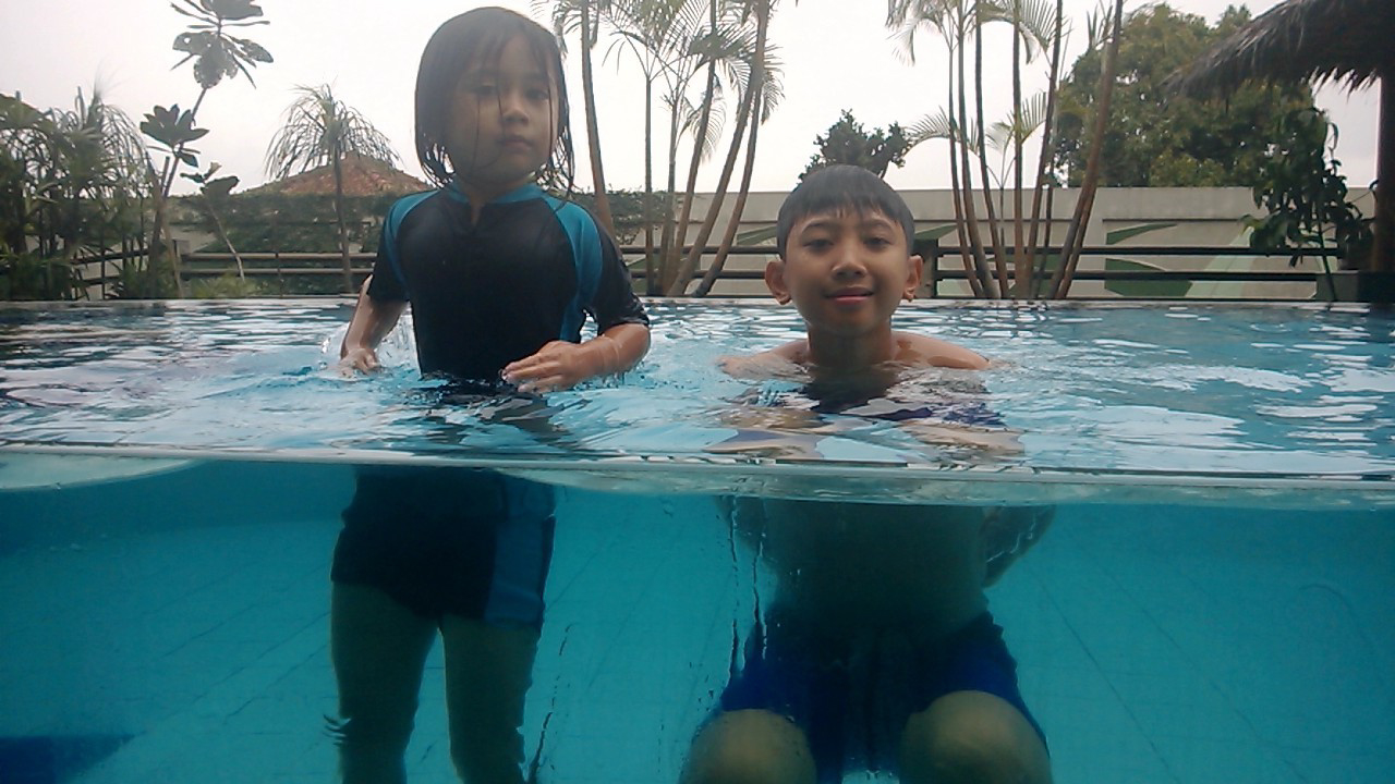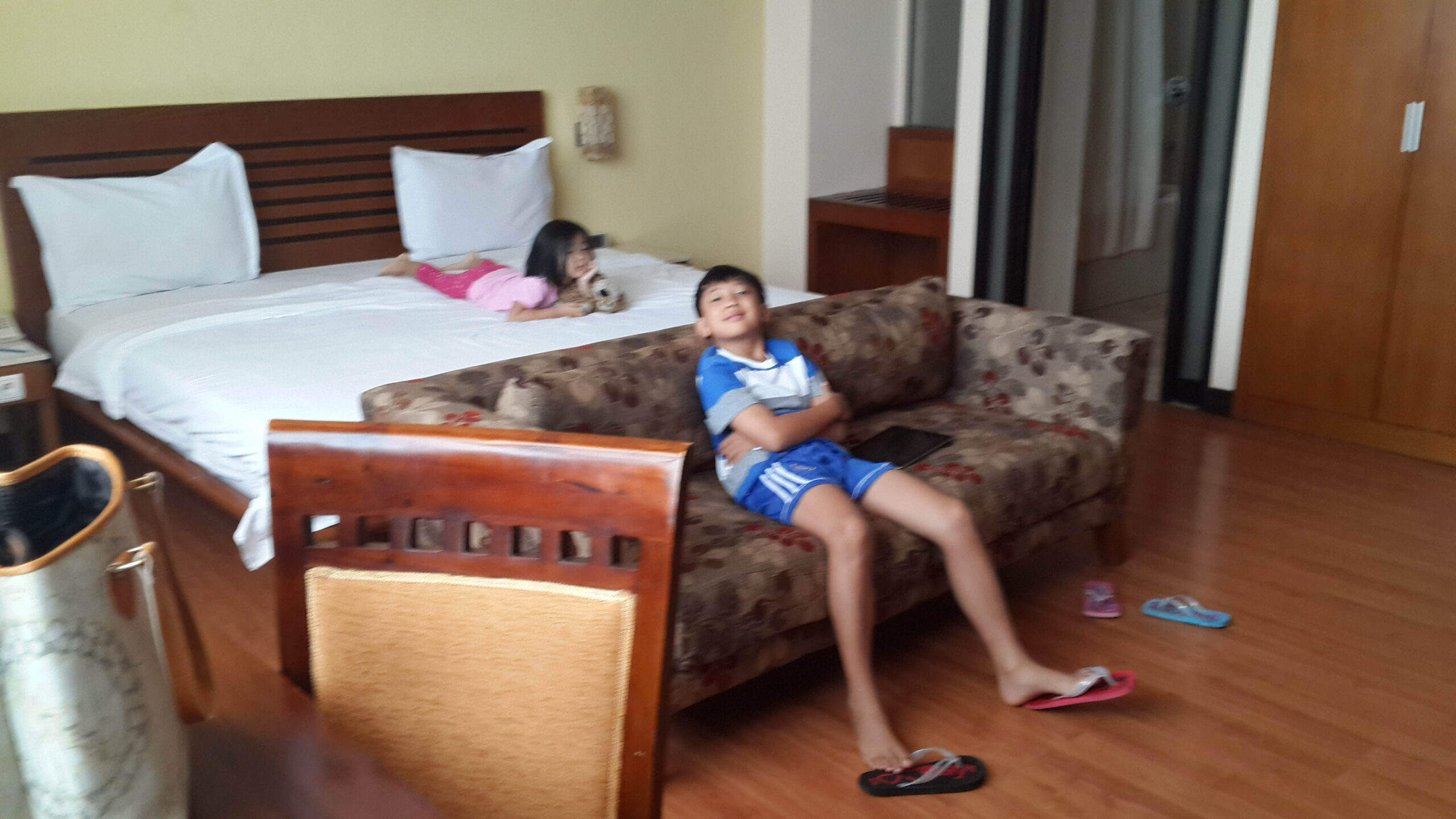 Hari pertama kami berencana ke Tangkuban Perahu, namun karena hujan dan sudah sore dianjurkan tidak ke sana oleh teman yang tinggal di Bandung. Diusulkan pagi harinya saja, baru ke Kampung Gajah. Jadi sore itu kami berenang saja di hotel.