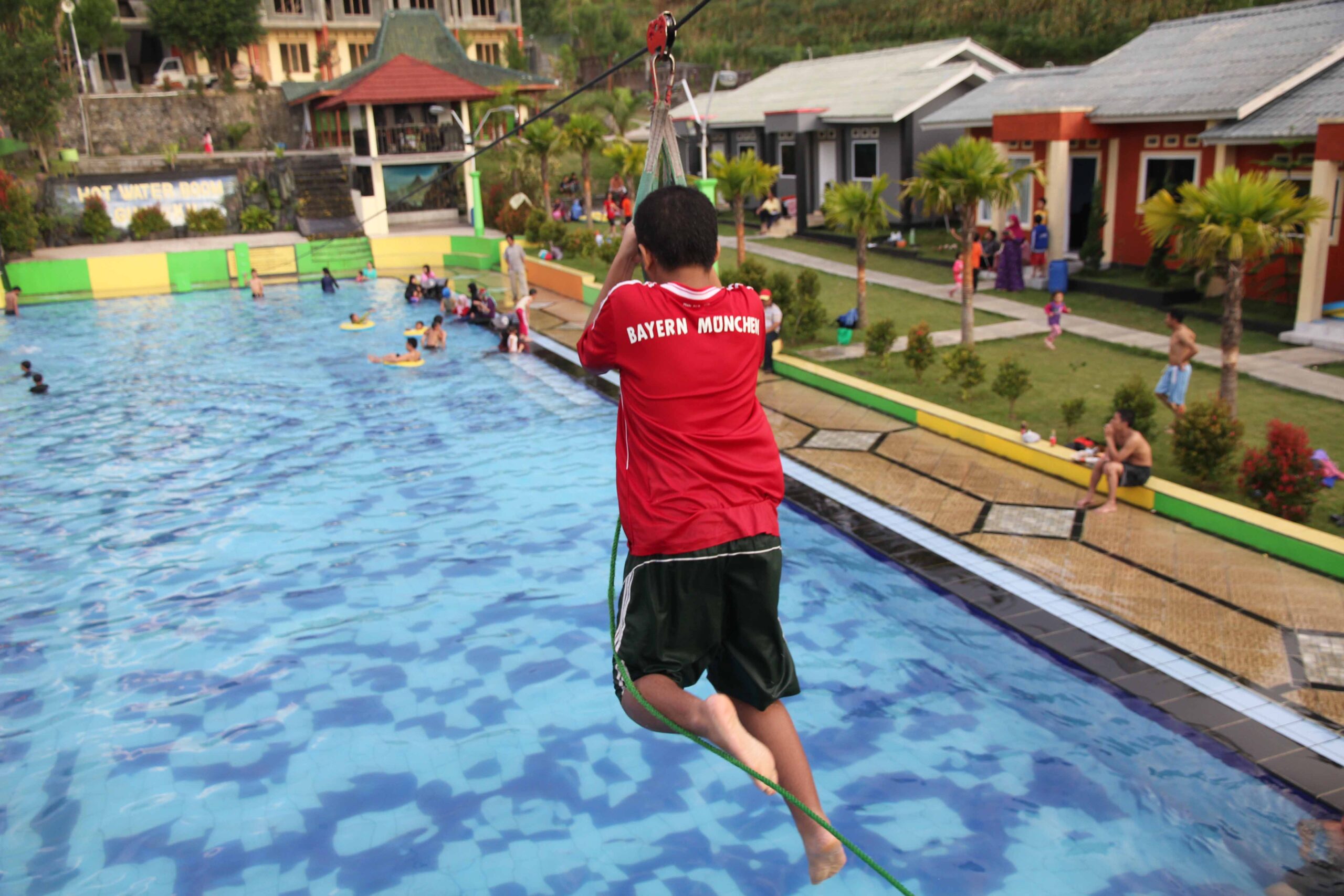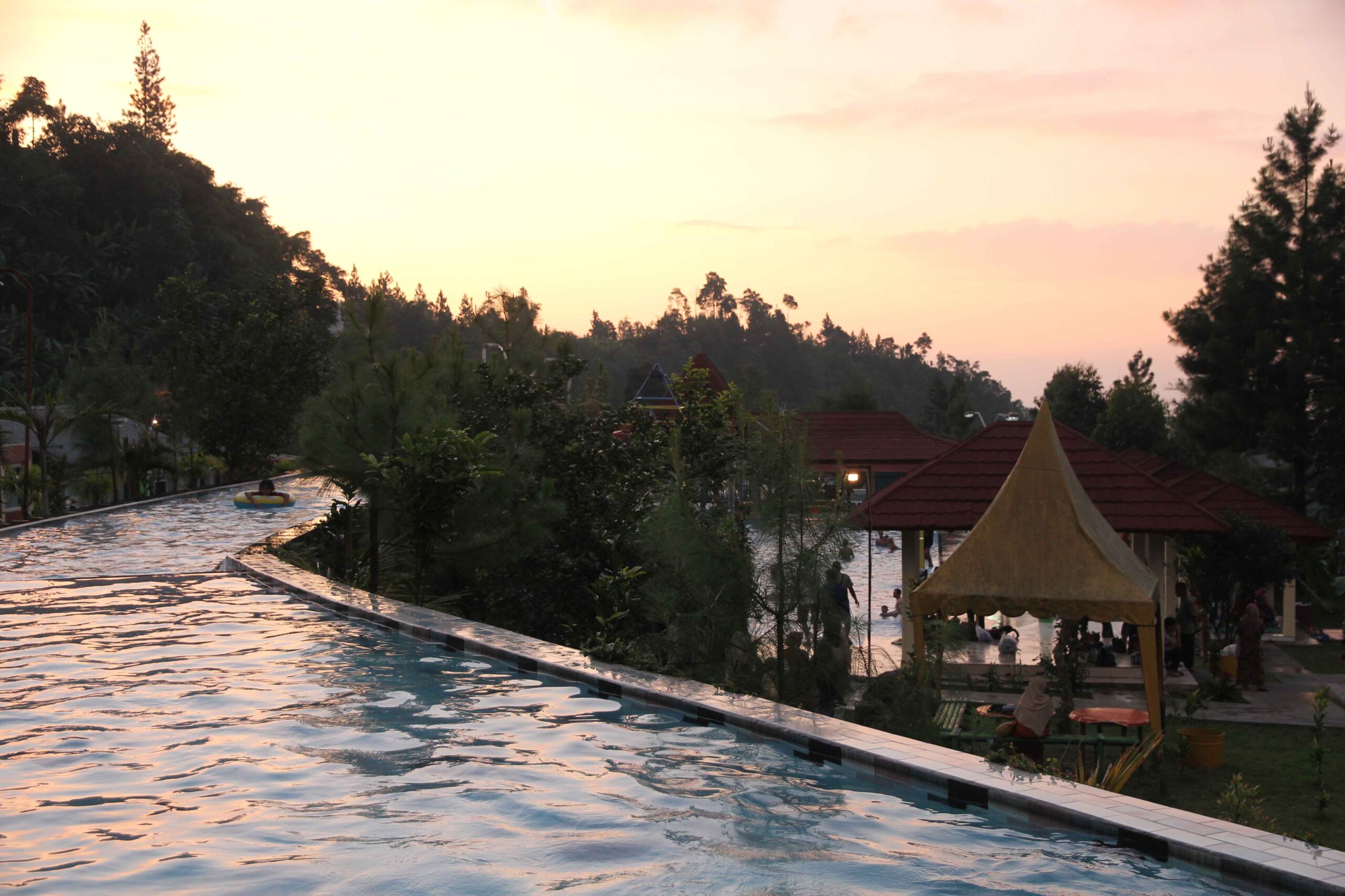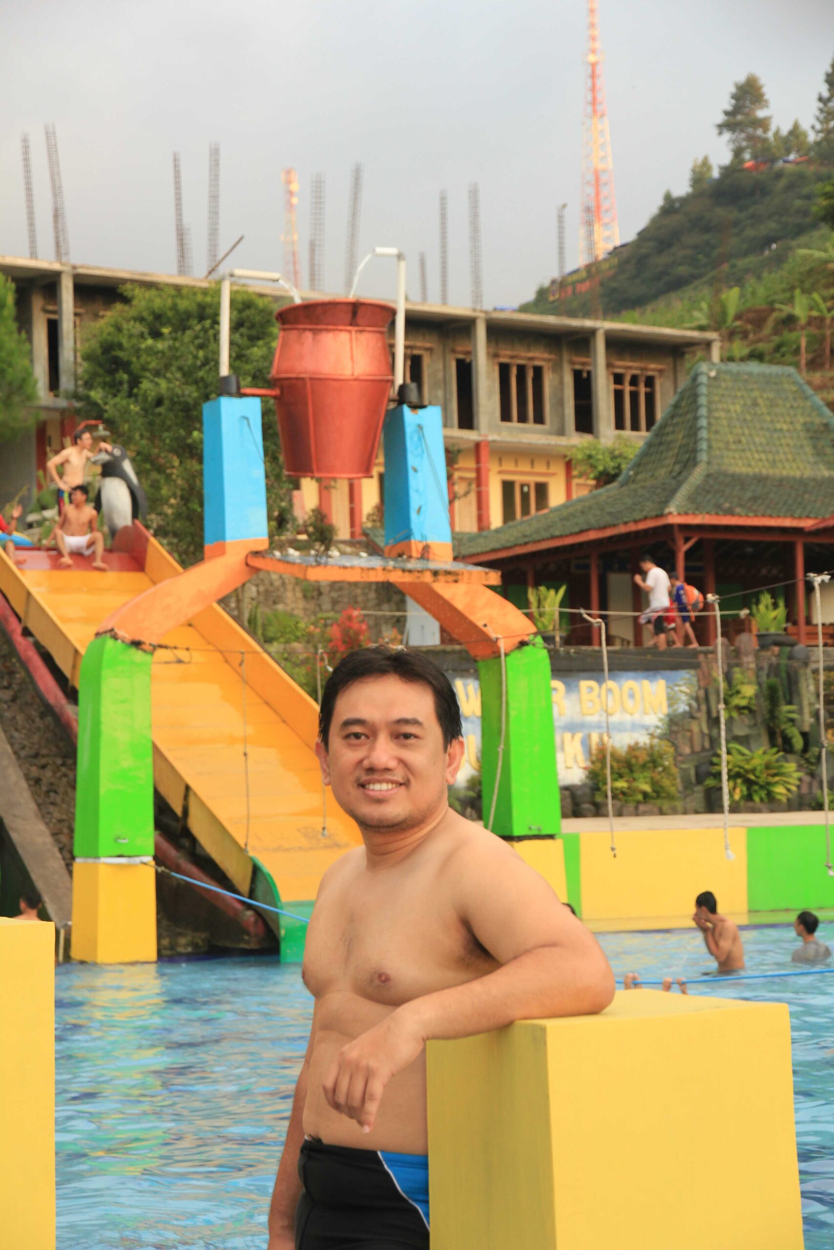 Berangkat jam 08.30 pagi dari purwakarta. Selama di tol lancar aja. Mulai agak tersendat antara Brebes – Tegal. Akhirnya sampai sekitar jam 16.00. Pemandangan dilokasinya bagus, sayang karena pemandian terbuka anak2 dan ibunya nggak mau mandi dikolam dekat sungai. Besok paginya saya tawarkan kolam rendam privat berbayar. Mereka mau, lega juga Om, semua mau. Setelah puas berendam, baru pindah ke hot water boom.