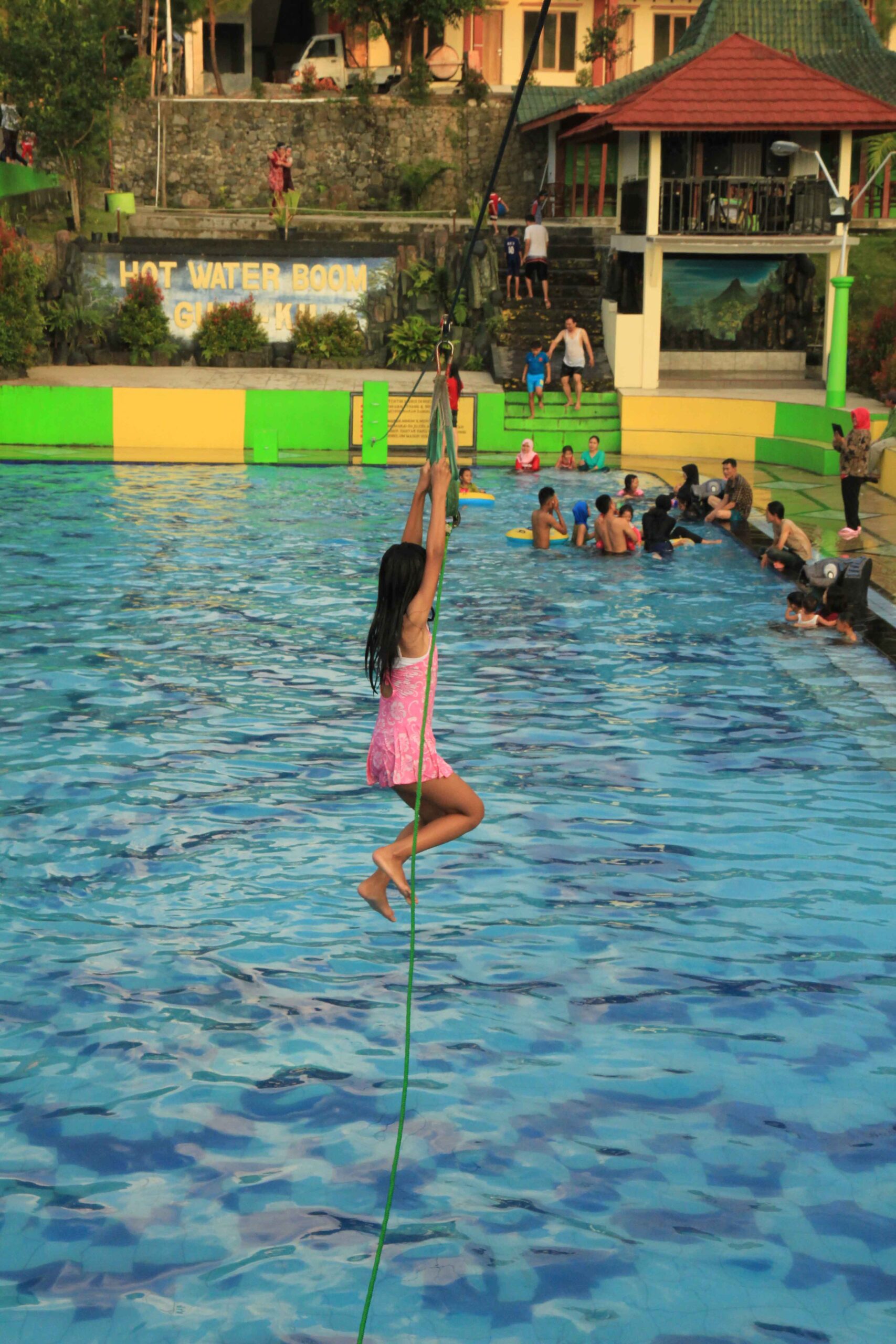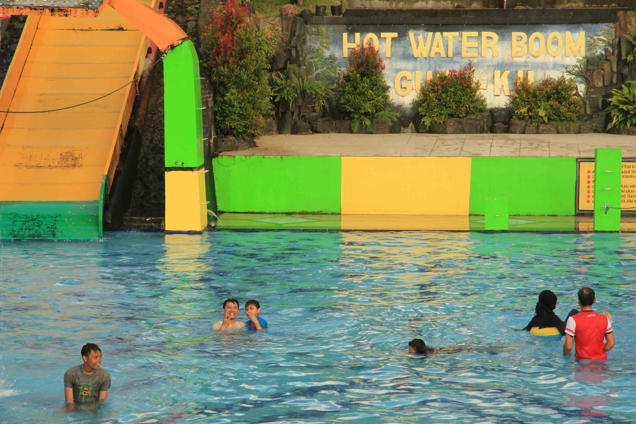 Mudik tahun ini sangat berkesan buat anak-anak. Liburan ke Tegal kali ini kami menginap di Guci, dan menikmati mandi air panas di Hot Waterboom Guciku yang belum ada satu tahun diresmikan. Tiket masuknya 25 ribu rupiah, yang biasanya hanya dibandrol 20 ribu di luar lebaran. Ada tiga kolam besar yang berbeda ketinggian dan semuanya dialiri air panas dari sumber alam di kaki Gunung Slamet. Dulu sebelum ada tempat wisata ini, Guci punya tempat pemandian air panas gratis di dekat air terjun, dan ada kolam renang air panas Sosro yang memiliki dua kolam air panas. Yang sosro ini sebelumnya jadi favorit, namun setelah Guciku dilaunching, Sosro mulai tergeser posisinya di hati para pengunjung Guci.
