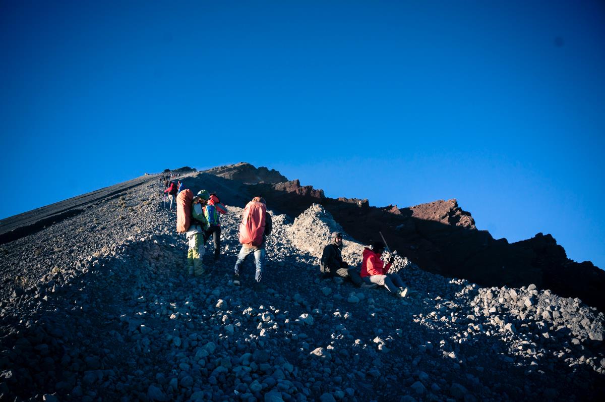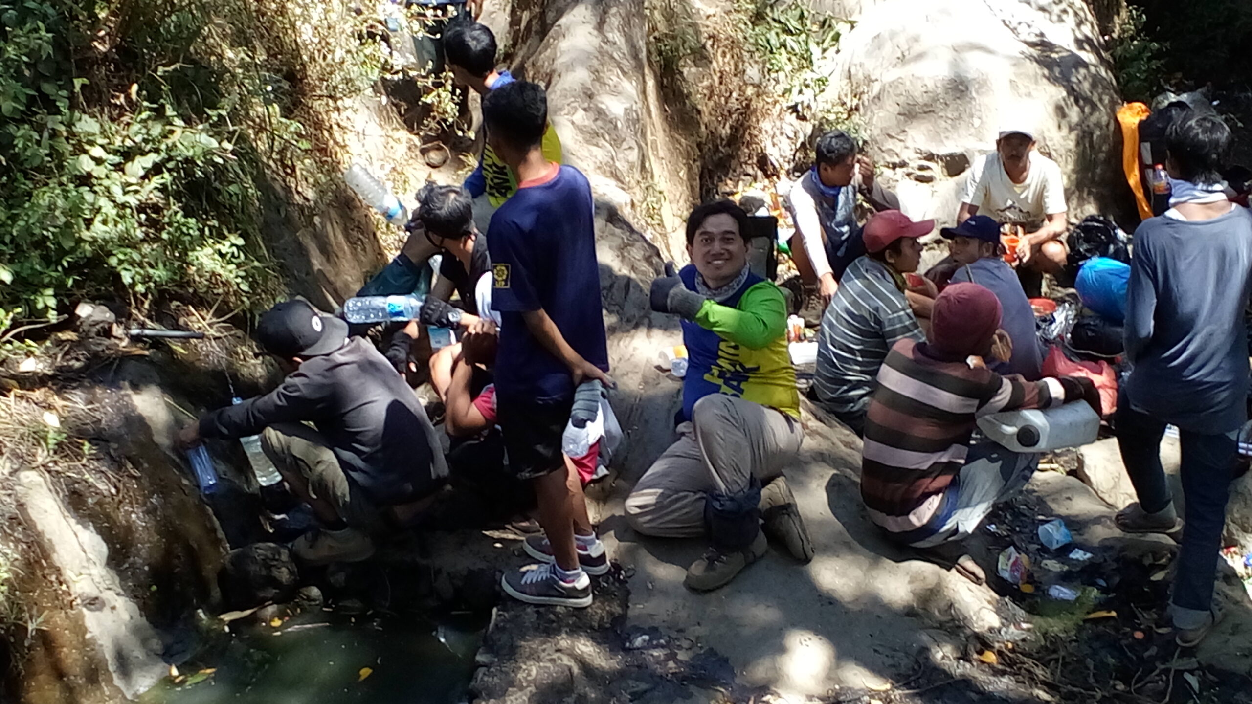 Kami istirahat di setiap pos. Di pos 2 kami mengantri untuk mengisi botol dengan air dari mata air di sana. Lumayan untuk bekal perjalanan sampai ke bawah. Setelah pos 1 kami melihat penjual semangka yang manis dan terenak yang pernah saya rasakan (karena dimakan dalam keadaan lapar dan haus hehehe). Minum sebotol minuman mineral yang dijual di sana. Alhamdulillah nikmatnya.
