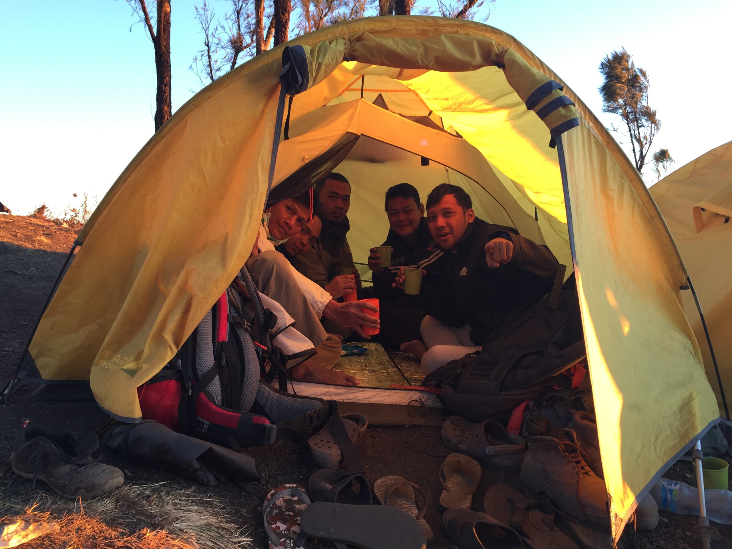 Sampai di Sembalun mobil pick up siap menjemput kami ke Senaru, base camp Pak Nur Saat. Akhirnya kami kembali bisa menikmati segarnya mandi air bersih, gosok gigi, keramas, dan wanginya sampo serta sabun mandi. Alhamdulillah. Pengalaman yang luar biasa. Keesokan harinya kami berencana mengunjungi air terjun Sendang Gila dan Tuk Kelep yang konon begitu indah. Sore ini saya dan teman-teman menikmati makan siang buatan Chef Bu Saat dengan sambalnya yang lezat.