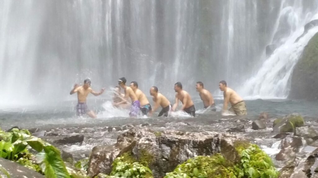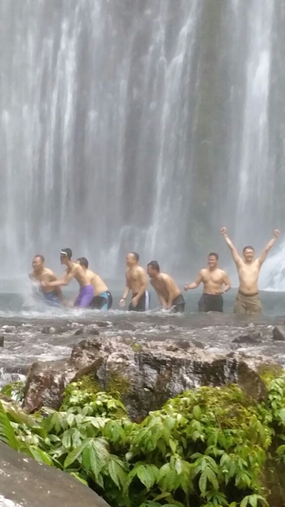 Asiknya mandi dan bermain dibawah air terjun. Nikmat sekali itu.