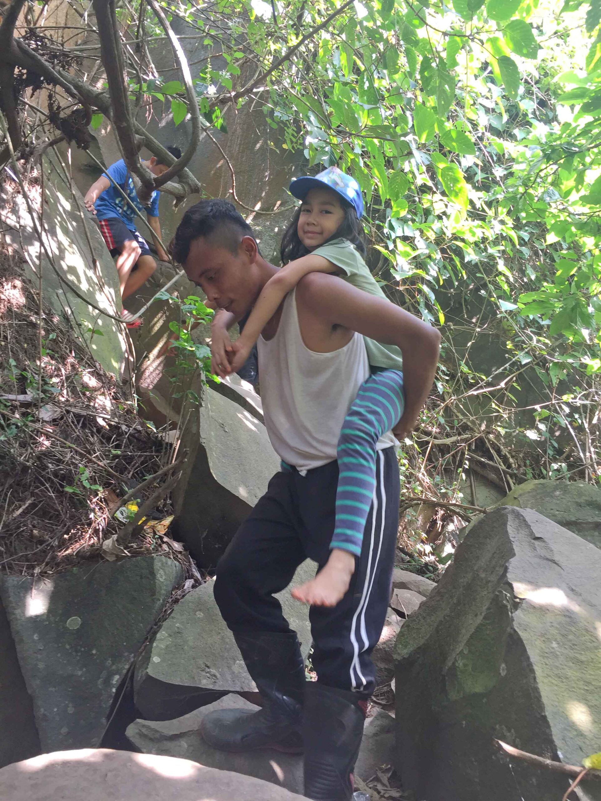 7. Sebaiknya minta didampingi oleh porter, misalnya Mas Gowor atau Mas Tahur, untuk menjelaskan tentang sejarah Goa Lawa maupun mendampingi selama pendakian. Anak saya Aila juga kadang dia gendong ketika posisi mendaki atau turun cukup sulit. Tarif tidak dipatok, serelanya saja.