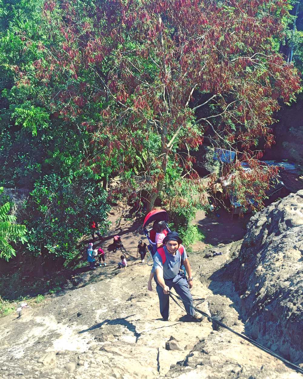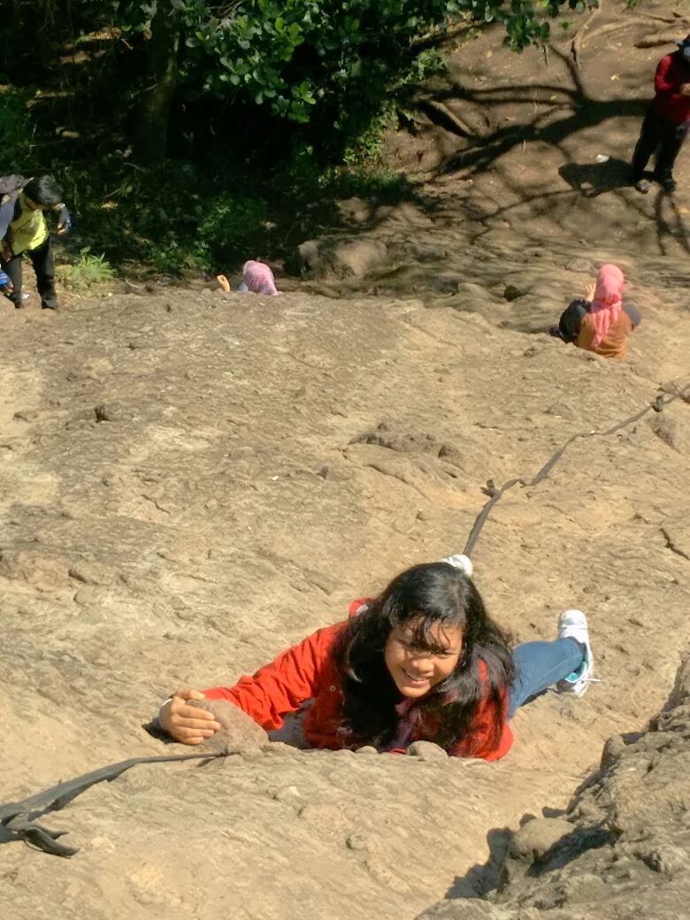 - Sebaiknya mendaki satu persatu, jangan beramai-ramai menggunakan tali karena sepertinya tidak kuat untuk digunakan beramai-ramai