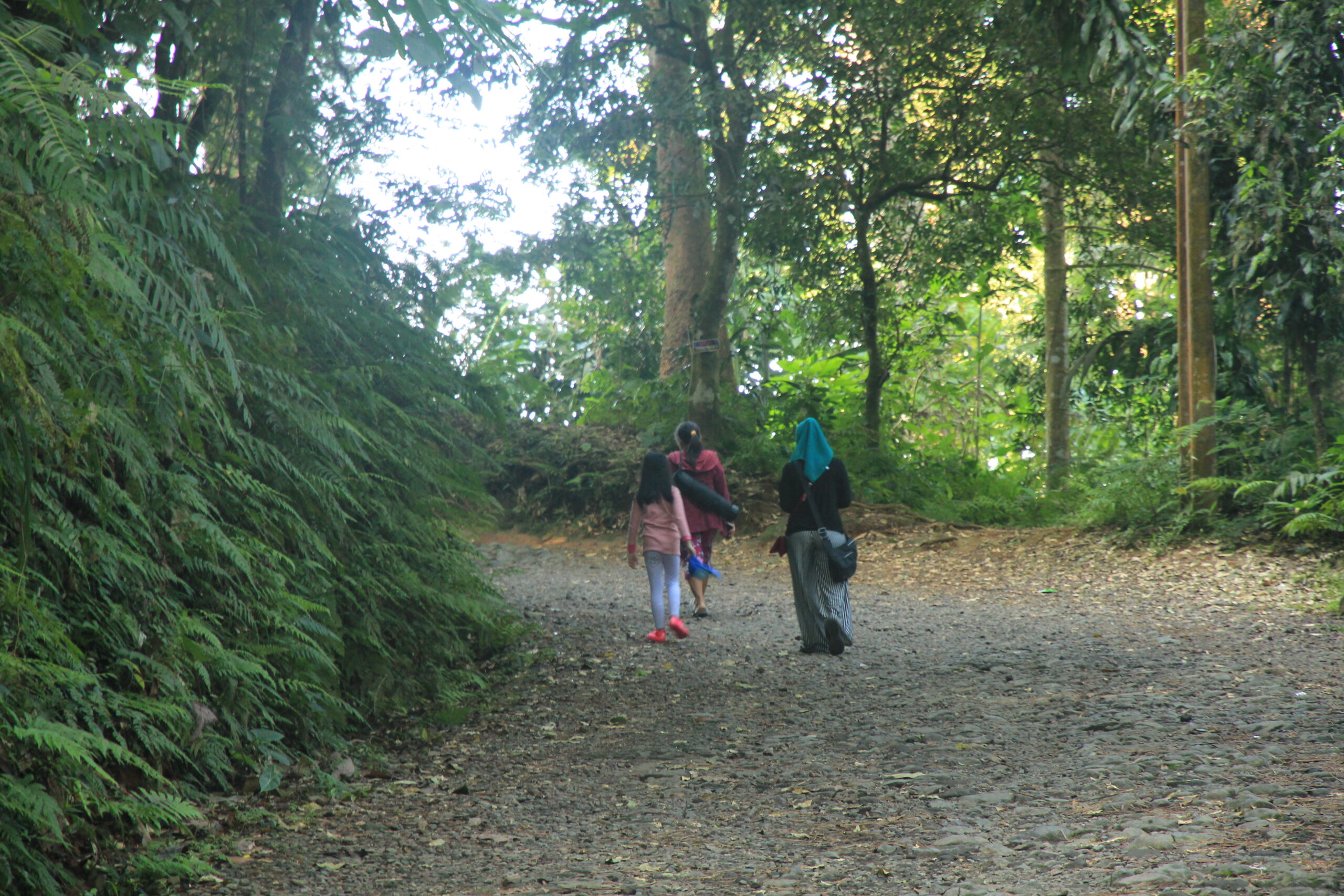 Pagi harinya, setelah packing, kami mengunjungi wisata air terjun Curug Sawer yang jauhnya sekitar 2 km. Jalannya naik turun, menantang buat mereka yang tidak pernah olah raga. Tapi tenang saja, jika malas jalan dan keringetan, ada jasa ojek sampai ke air terjun seharga 35 ribu per orang. Kalau kami memilih jalan ke sana sambil menikmati udara segar dari pepohonan yang menghijau. Kalau bisa pakai sepatu outdoor agar tidak lecet kena batu.