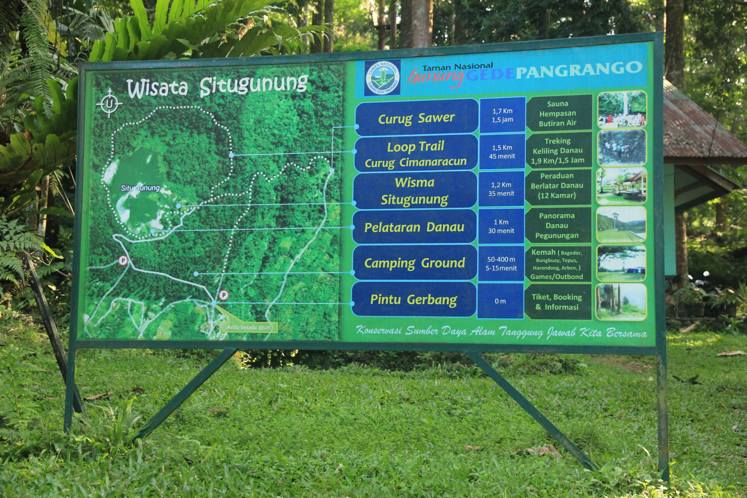 Saya mendapat bantuan dari Mas Yandi yang bisa dihubungi di 0856-60-99-77-17. Silakan hubungi dia kalau mau berkunjung ke Situ Gunung, dia akan bantu semuanya. Saya sangat terbantukan dengan pelayanan dia selama di sana. Mau pisang goreng panas di pagi hari, tinggal SMS, langsung datang. Mau api unggun, tinggal sms, udah tersedia. Asyik deh, berasa di hotel bintang semilyar hehehe..