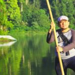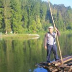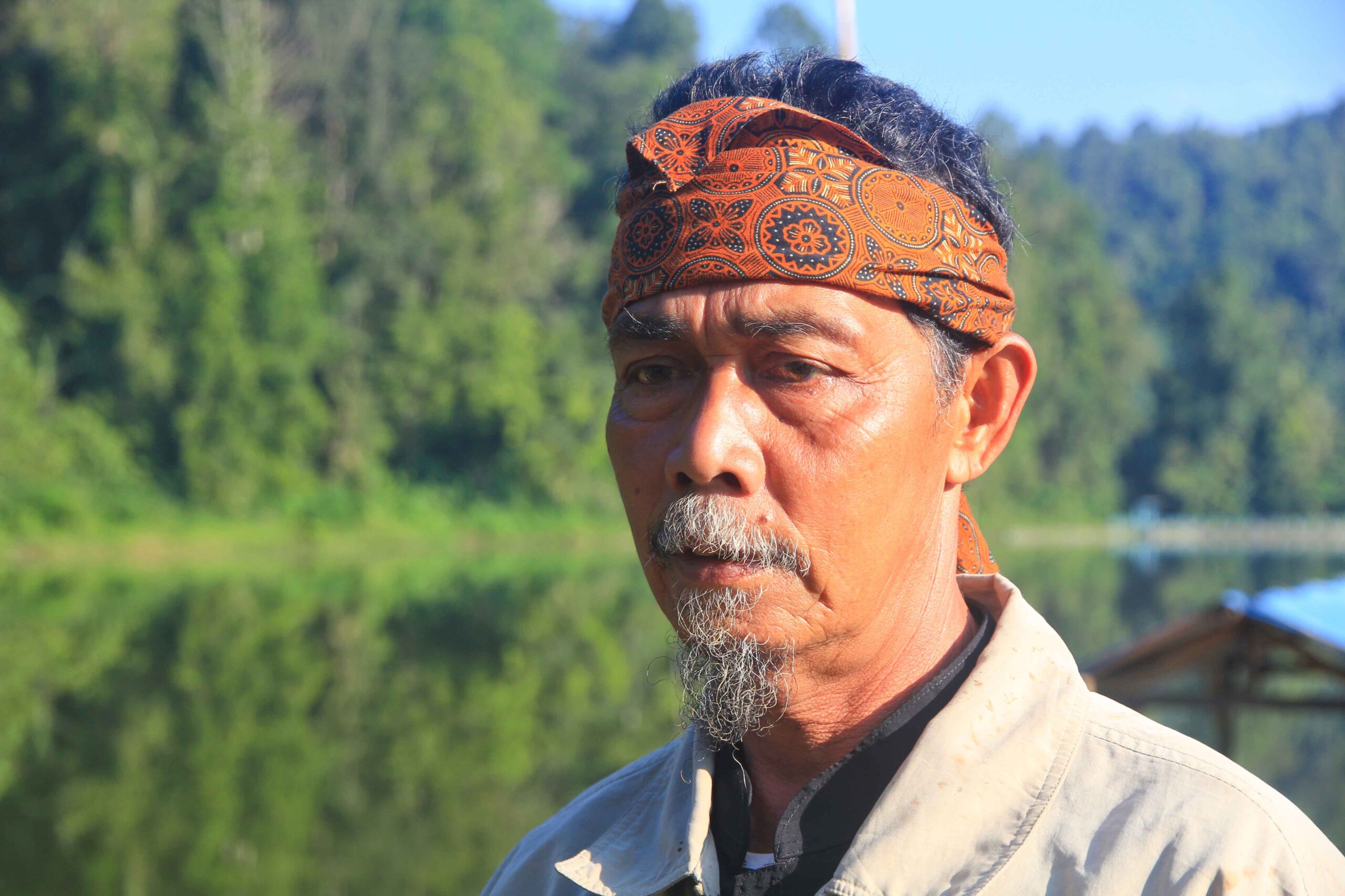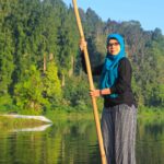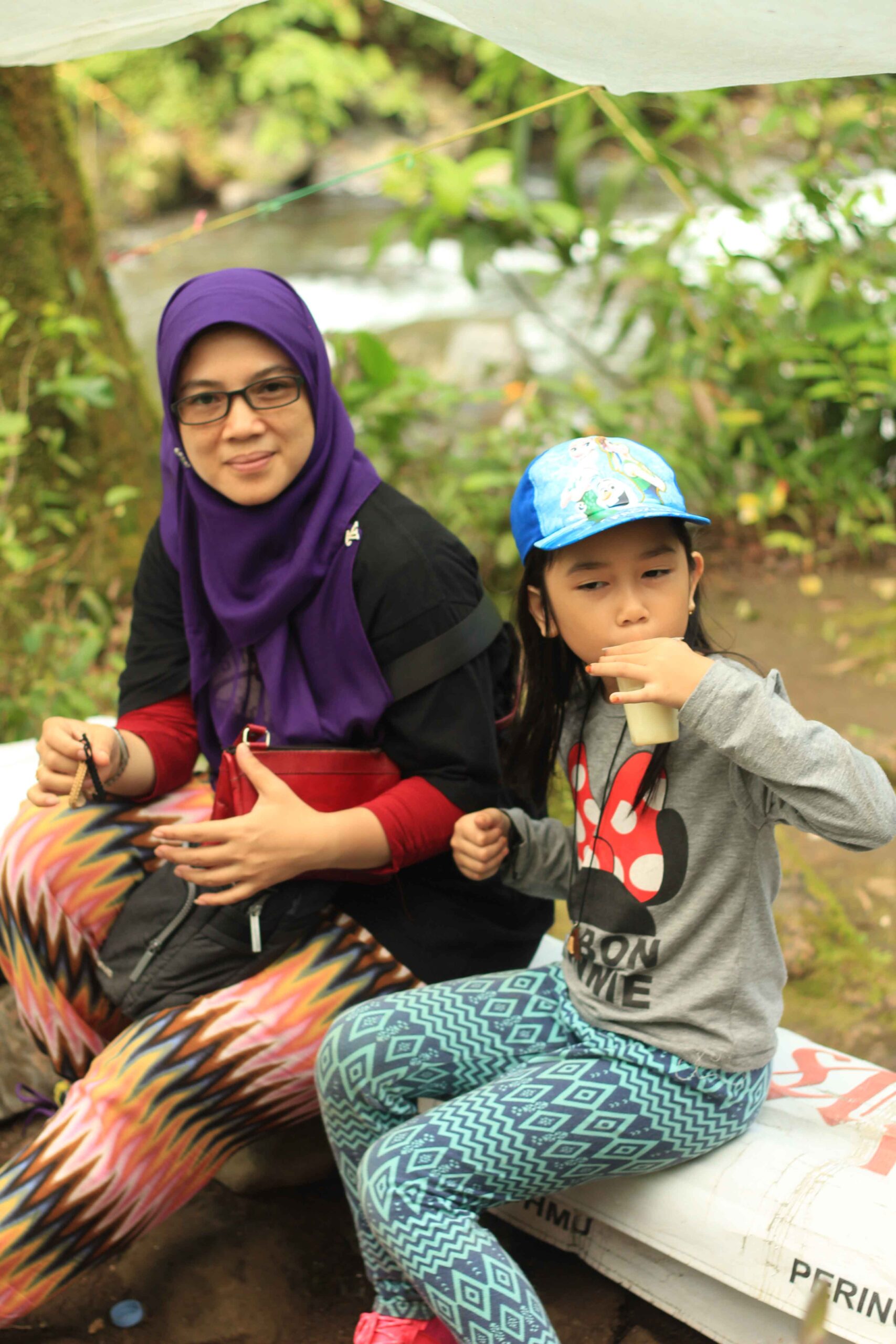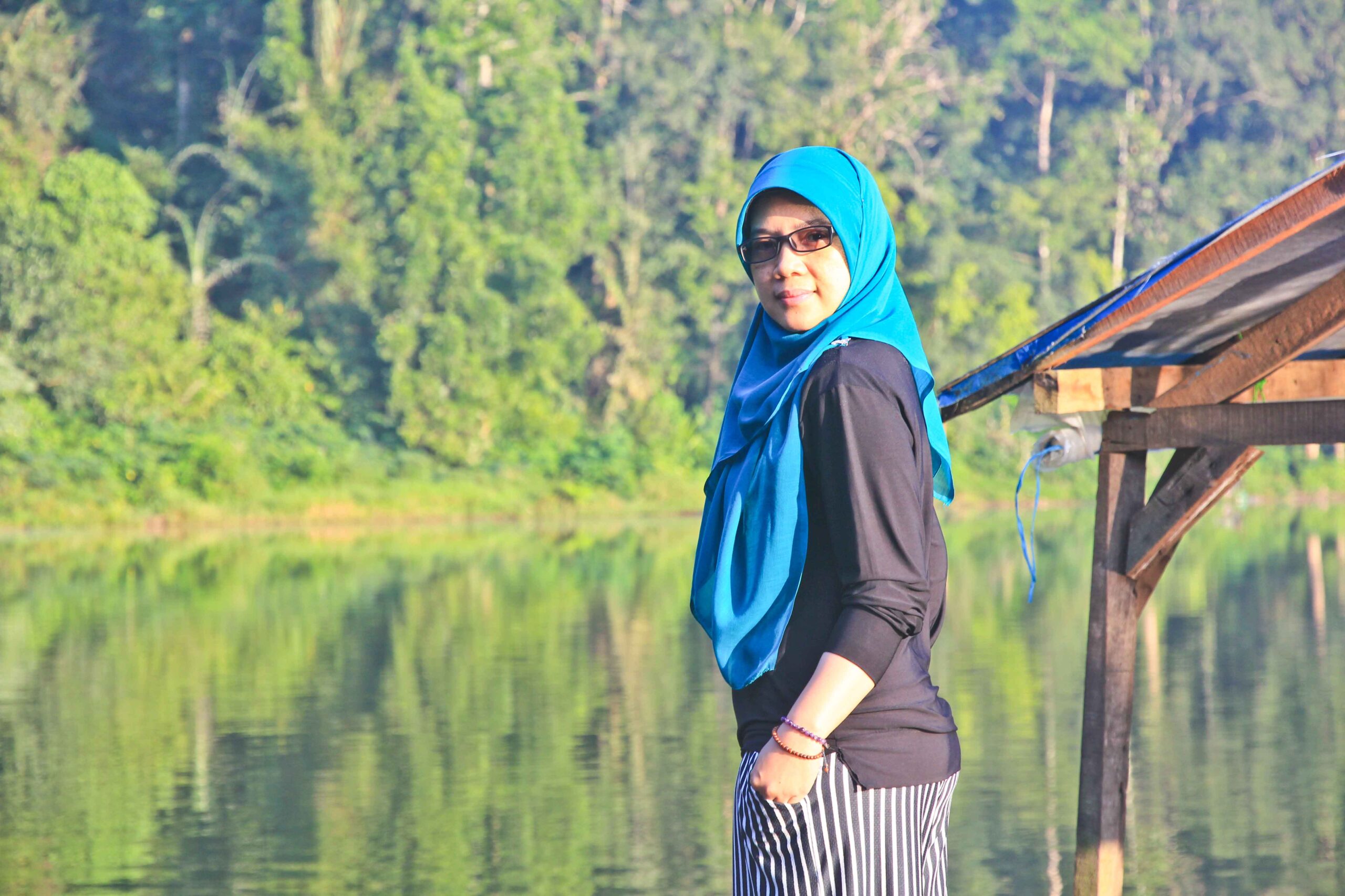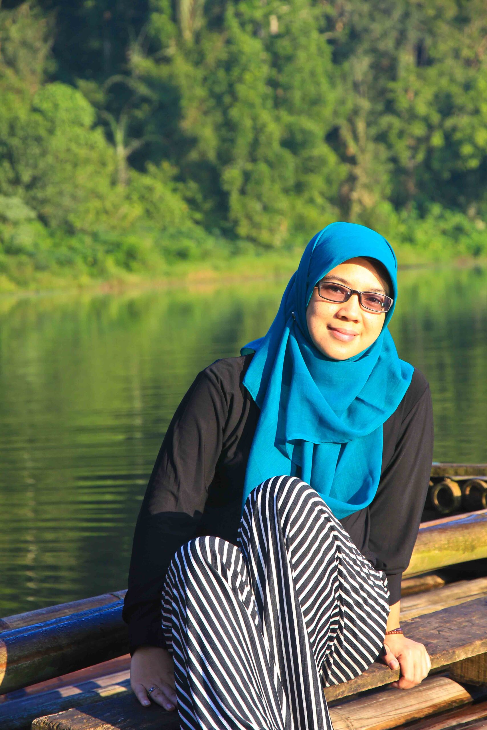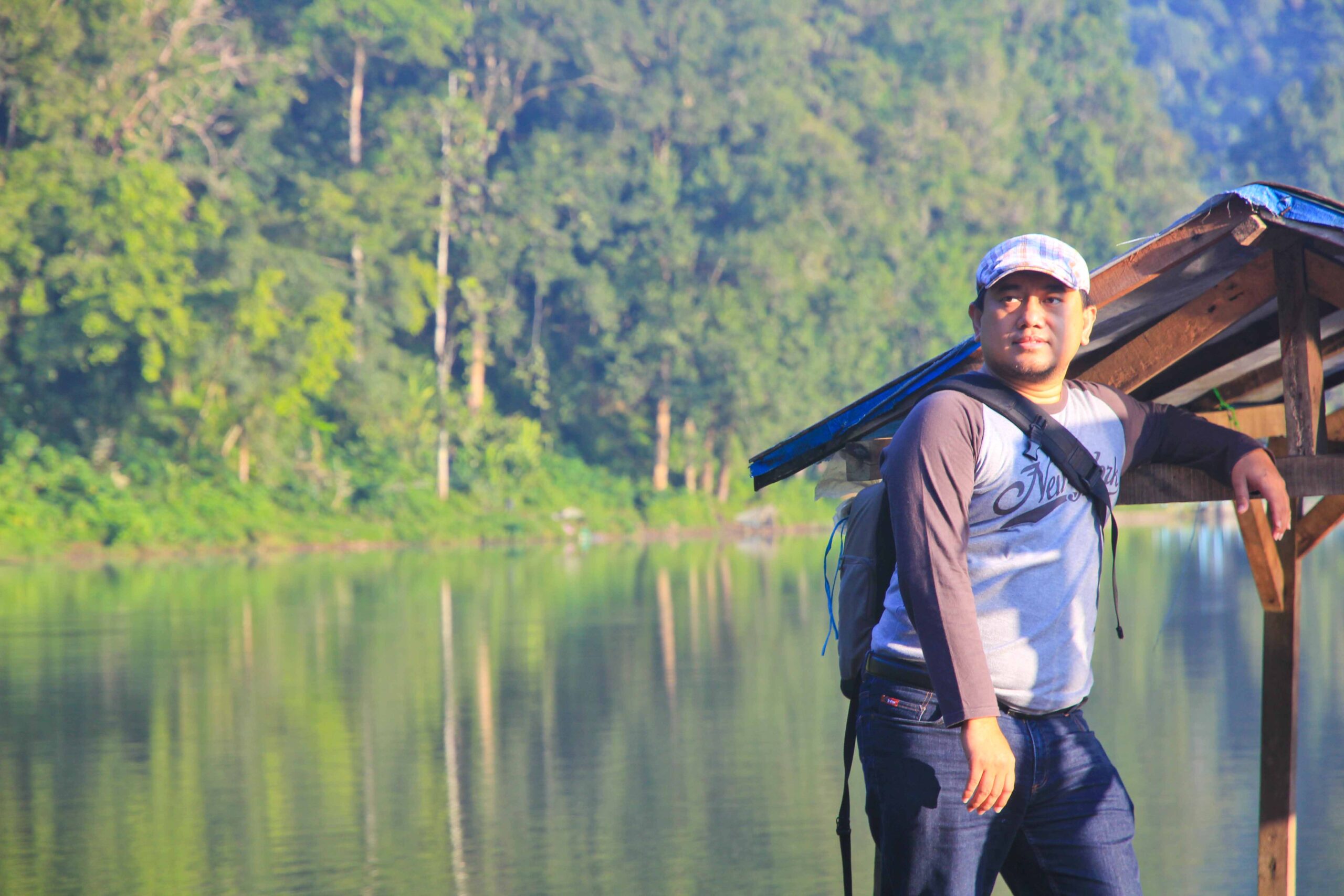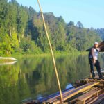 Oh ya, gambar di atas ada gambar Pak Miftah, orang tua yang mengenakan ikat kepala. Dia yang mengoperasikan rakit bambu dengan tarif 15 ribu per orang. Kalau mengambil foto di atas rakitnya, kasihlah barang sedikit uang untuk keluarganya.
