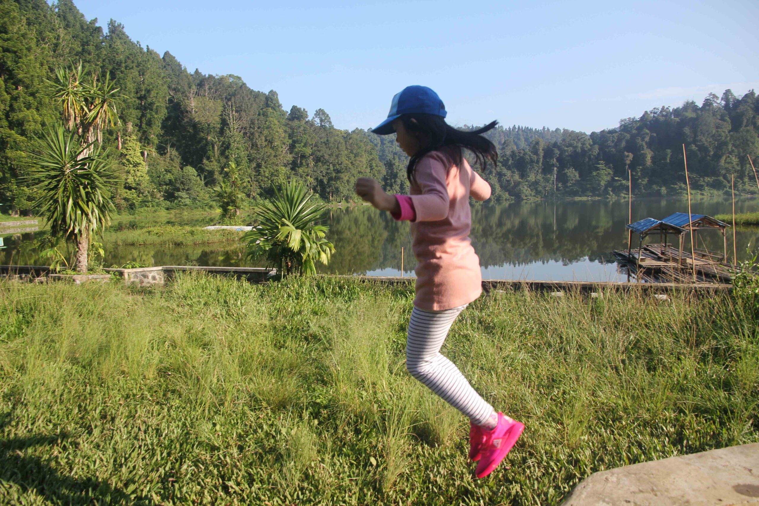 Setelah urusan administrasi beres, kami segera bergegas menuju danau. Dari pintu gerbang jaraknya sekitar 700 meter. Bisa naik ojek ke sana, namun kami memutuskan untuk berjalan kaki membakar kalori sambil menikmati sejuknya alam.
