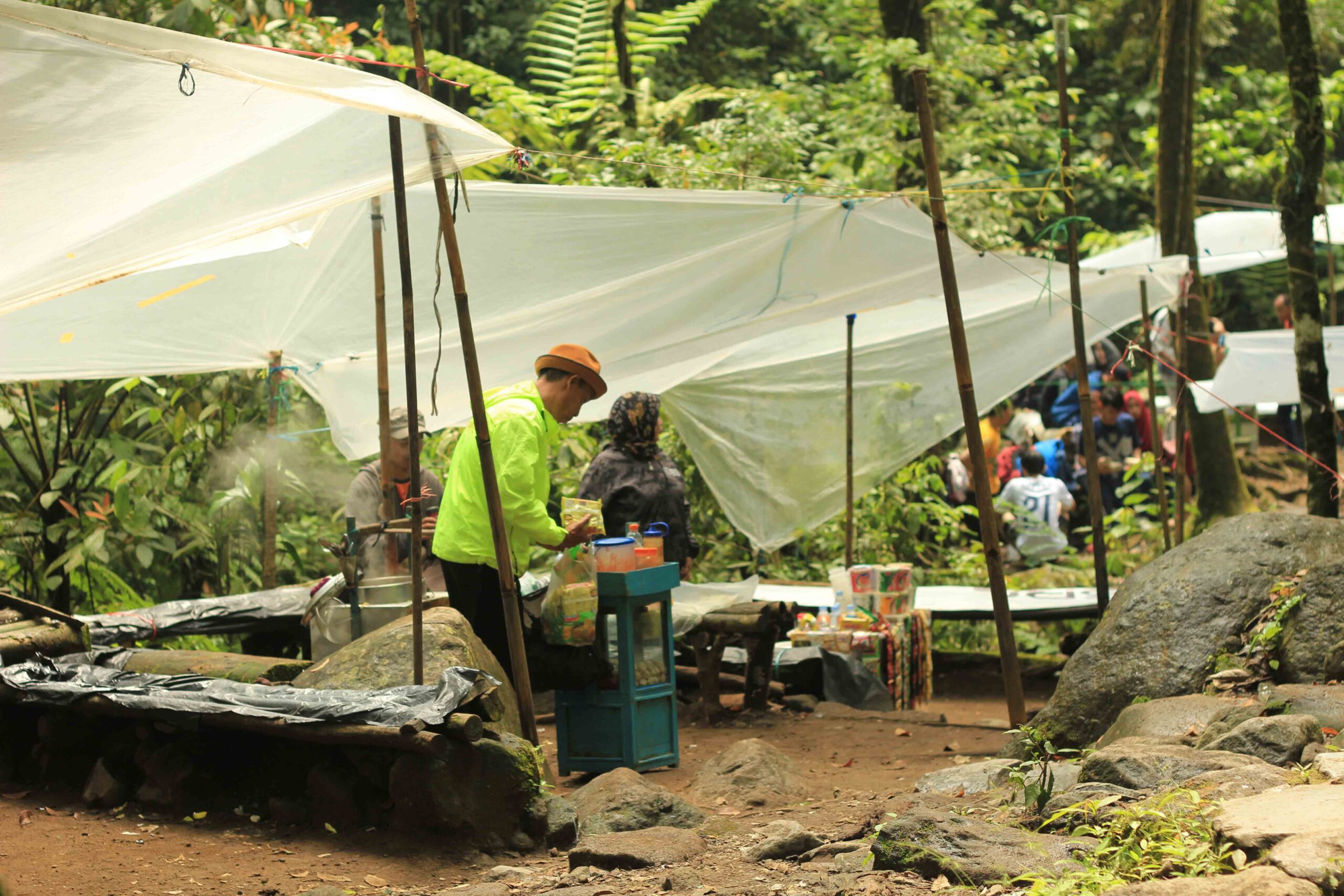 Waktu itu kami berlima, buka dua tenda. Rombongan anak sekolah beberapa bis baru pulang. Malamnya dua tenda lain join dekat kami.