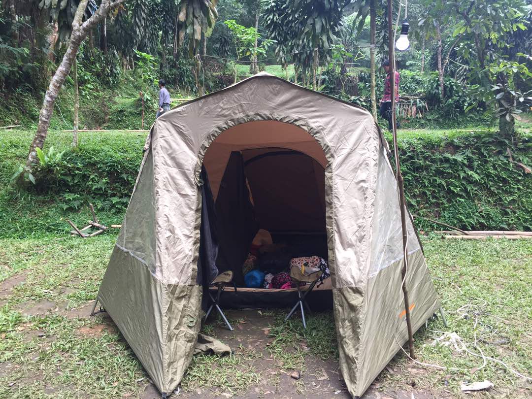 Saya bawa sendiri kebetulan. Kalau glamping di Tanakita sudah disiapkan semua.