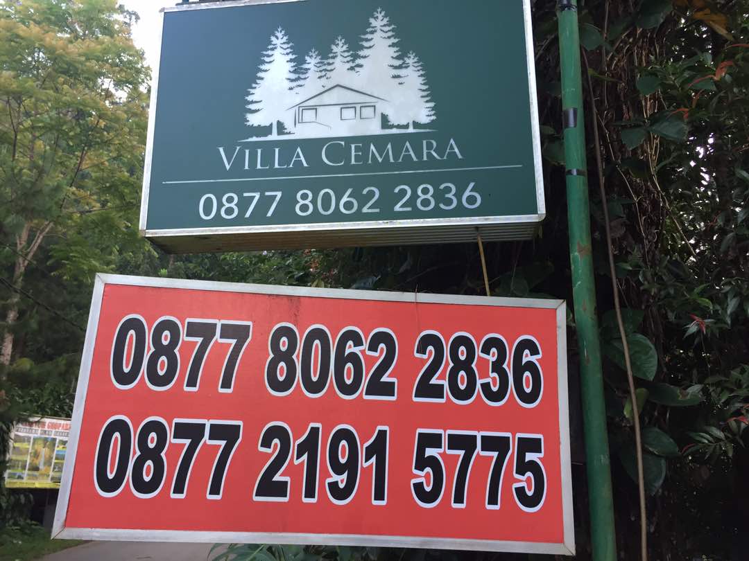Nah karena sampai di sana sudah malam dan banyak perabotan yang kami bawa, akhirnya kami putuskan malam itu tidak langsung berkemah di area wisata. Untungnya, sekitar 10 meter sebelum pintu masuk ada penginapan, Villa Cemara. Dari salah satu teman pencinta outdoor, kabarnya villa ini pemiliknya cukup ramah (Ibu Tuti), dan memang benar adanya. Buat kalian yang ingin menikmati indahnya Situ Gunung dan Curug Sawer tanpa ingin berkemah, bisa memilih untuk menginap di sini. Saya sarankan untuk booking sebelum datang, karena bisa saja penuh. Untung saja waktu itu kami masih mendapatkan dua kamar kosong di rumah bata. Dua kamar kosong yang tersisa berisi masing-masing tiga dan dua tempat tidur dengan kamar mandi di dalam. Air panas tersedia lho. Biaya menginap di kamar dengan tiga tempat tidur pada malam itu adalah 500 ribu semalam dan yang dua kamar 300 ribu semalam. Karena kami berlima bersama asisten RT, saya mengambil kedua kamar itu, agar kata anak pertama kami, saya dan istri bisa mendapatkan quality time. Hahaha.. dasar bocah kelas 2 SMP sekarang udah ngerti aja.. Sebenarnya bisa sih kami menginap dalam 1 kamar berlima dengan menggelar kasur pompa, namun ya itu.. saya dan istri tidak bisa mendapatkan “quality time”.