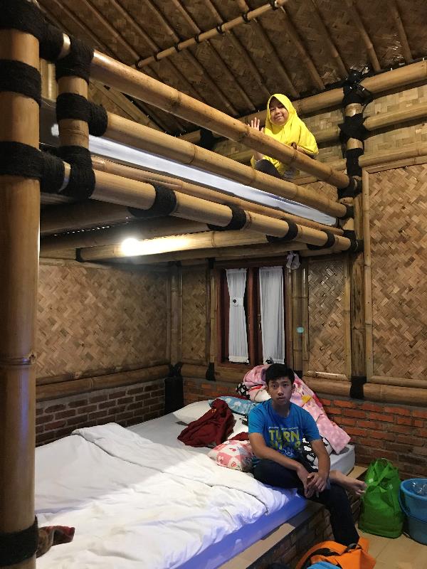 - Ada kamar yang bisa untuk 6 orang, harganya cuma 600 ribu rupiah, lengkap dengan air panas, wifi, dan TV, dengan sarapan untuk 3 orang! Per orang nambah 50 rb