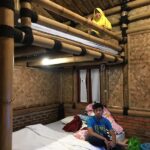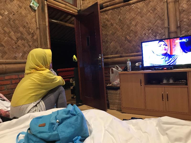 Ruangannya luas, ada tempat tidur bertingkat, masing-masing bisa untuk 3 orang atas dan bawah, sehingga bisa 6 orang total. Dindingnya menggunakan anyaman bambu yang memberikan kesan homy. Toiletnya menggunakan wc duduk, dan wastafel bisa mengeluarkan air panas. Jangan males mandi ya, gaes. WIFI dan TV tersedia untuk menemani kita. Handuk bersih, selimut tebal, lemari, dan toiletries sudah disediakan. Dispenser berisi air panas untuk masak indomie juga ada. Sayangnya cermin belum ada. Jadi istri kesulitan buat make up.