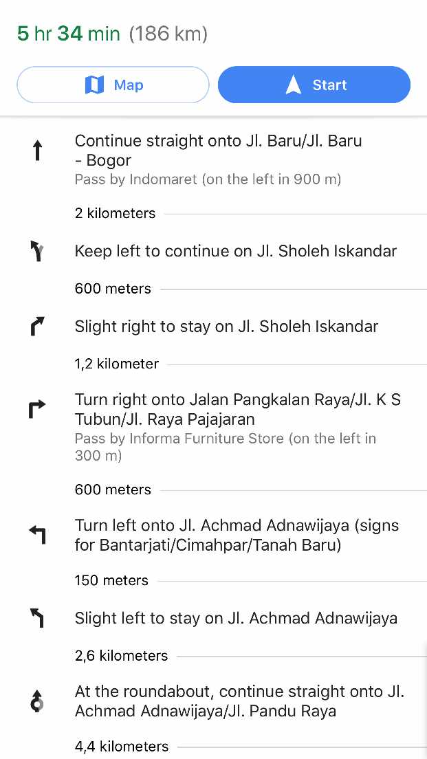 Kalau saya ingin berjalan kaki atau naik sepeda, baru saya menggunakan Google Maps untuk petunjuk jalan, seperti di Singapore atau downtown kota yang masih asing.