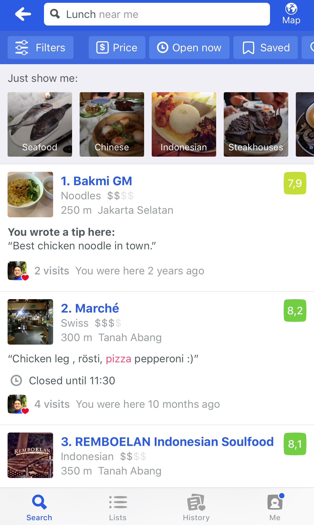 Dua aplikasi untuk mencari referensi kuliner di area sekitar kita adalah Foursquare dan Zomato.