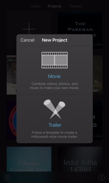 Saya menggunakan aplikasi iMovie dari Apple. Untuk Android mungkin bisa menggunakan aplikasi lainnya. Hal yang saya suka dari iMovie adalah sangat mudahnya membuat trailer atau movie dari video atau gambar yang kita ambil.