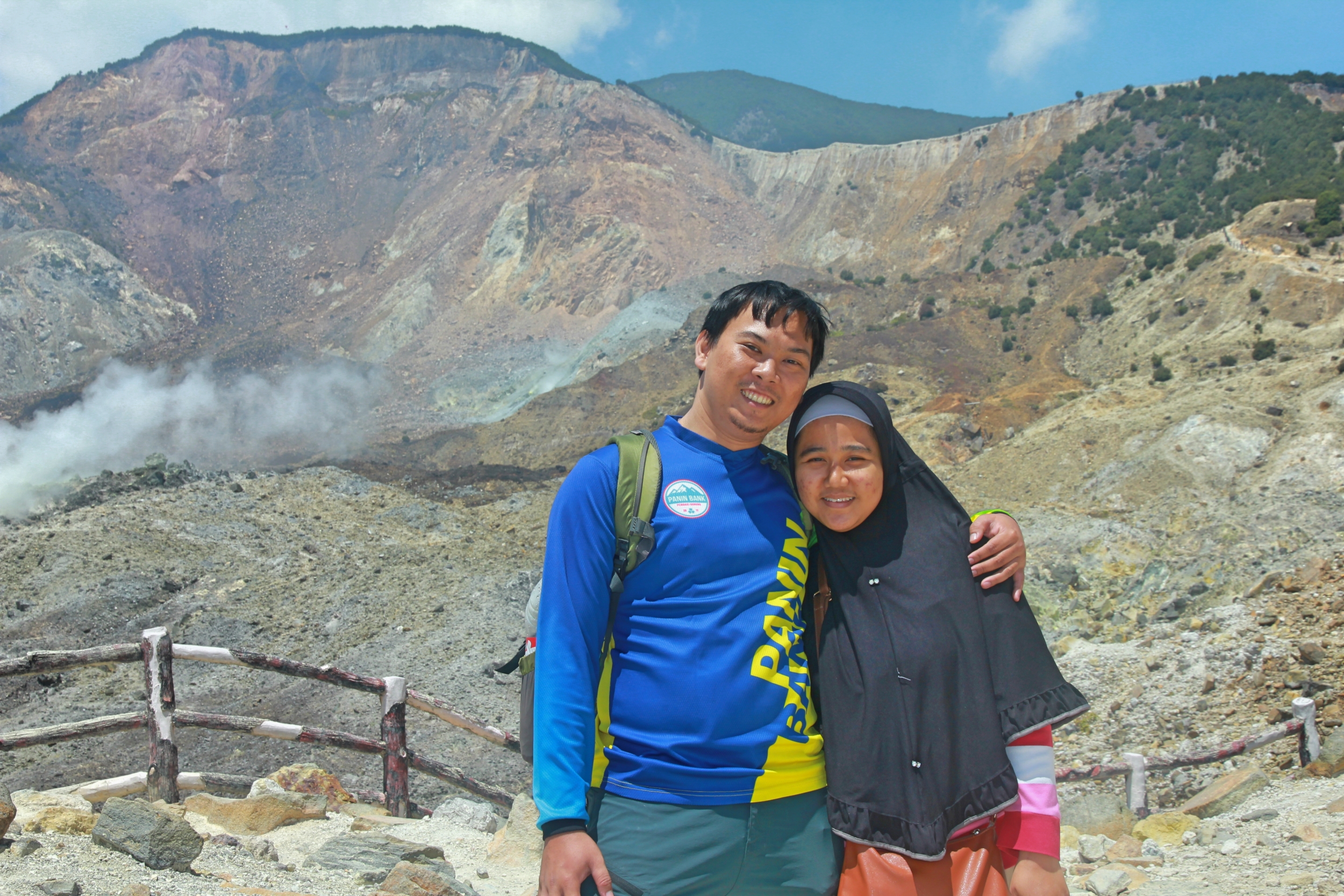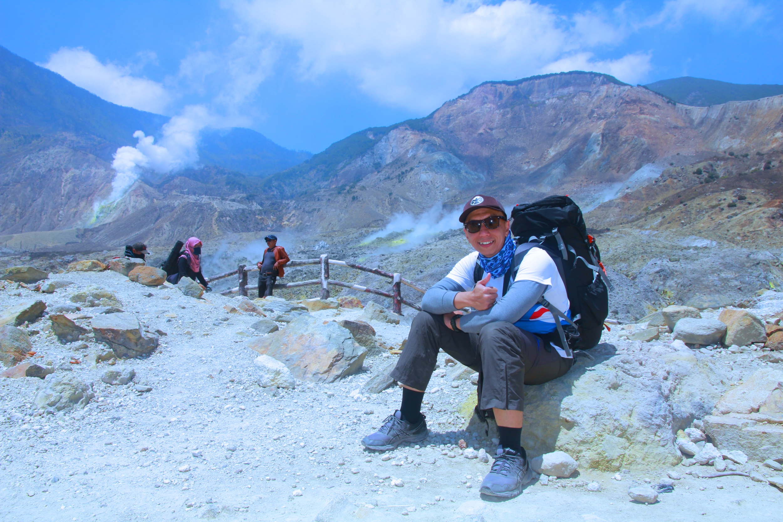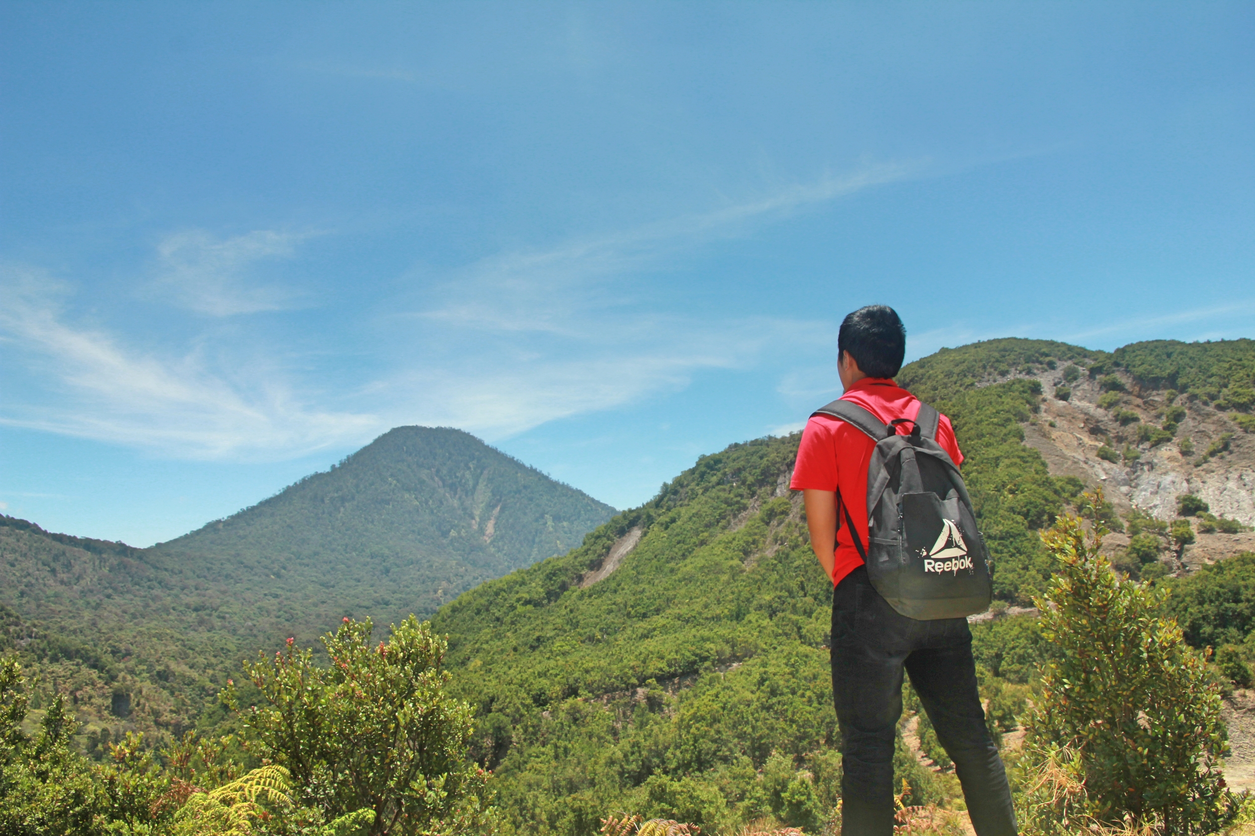 Setelah puas berfoto-foto dan sarapan untuk bekal nanjak ke bumi perkemahan, kami pun mulai berkelompok untuk memulai perjalanan. Cuaca pagi itu begitu cerah dengan matahari bersinar hangat menyambut kami. Berbeda dengan gunung lain yang dari basecamp sudah mulai menanjak, Papandayan menawarkan jalur yang sangat landai. Saking landainya motor yang dimodifikasi layaknya motor trail itu bisa digunakan untuk membawa barang-barang ke atas.