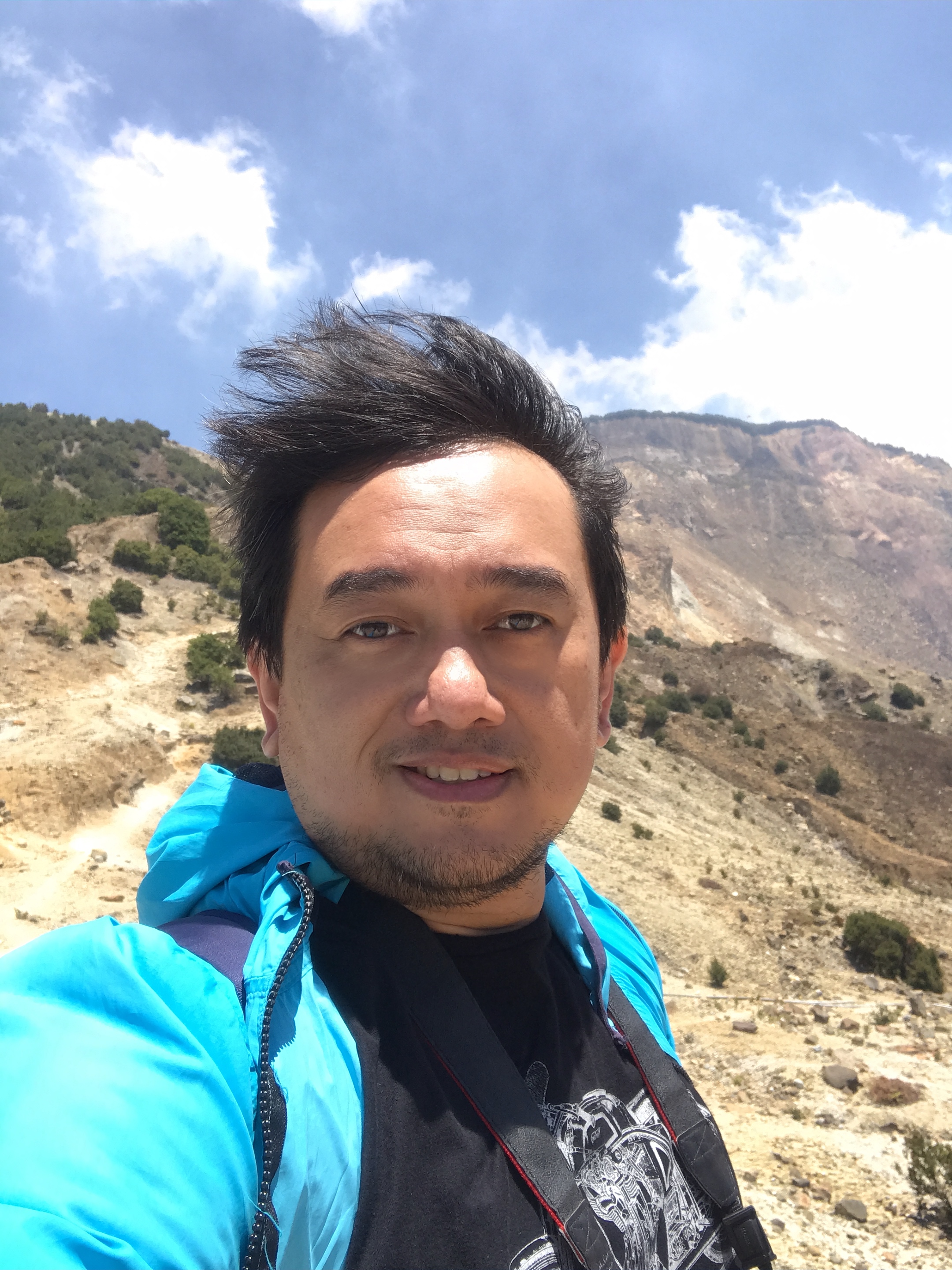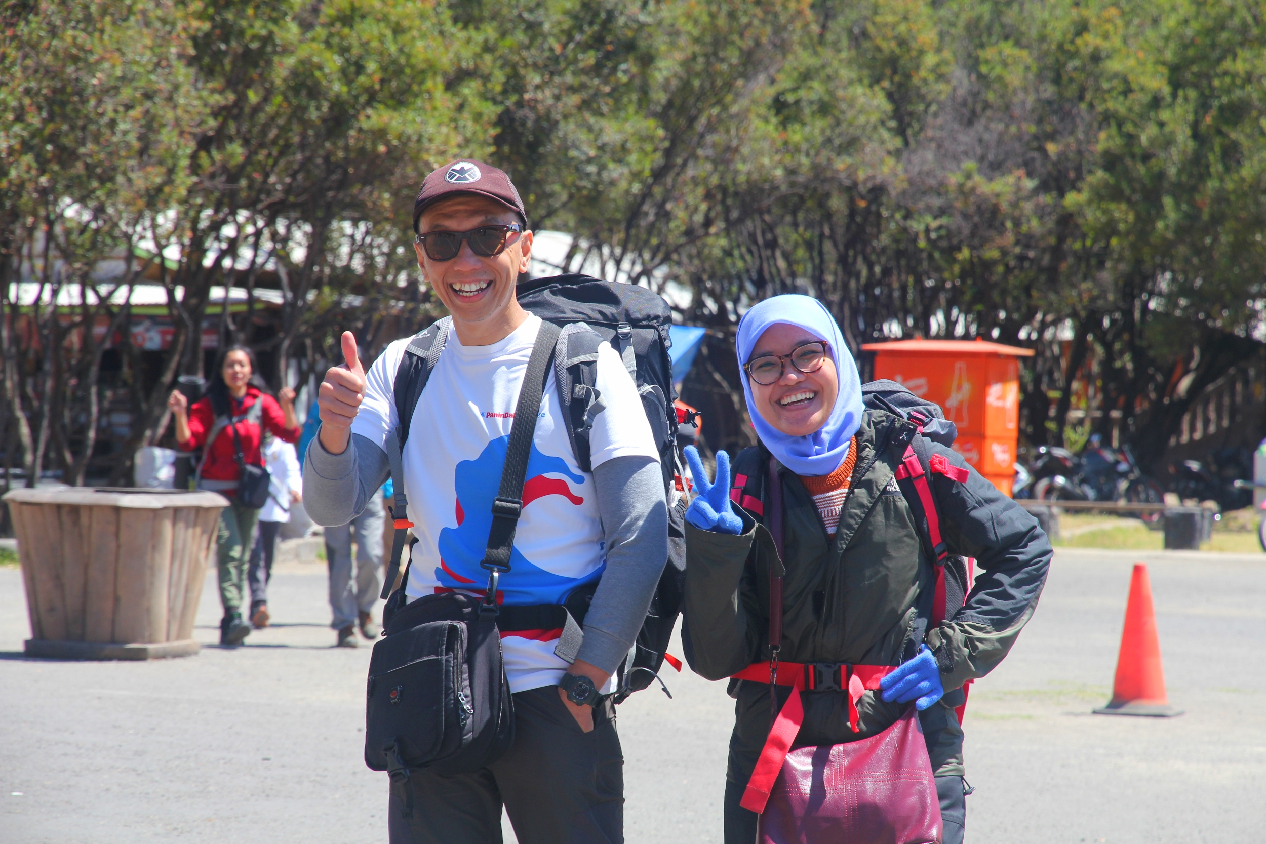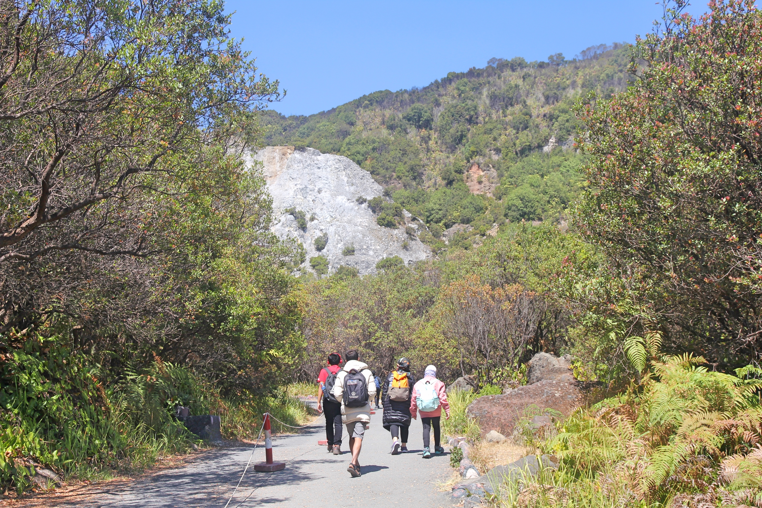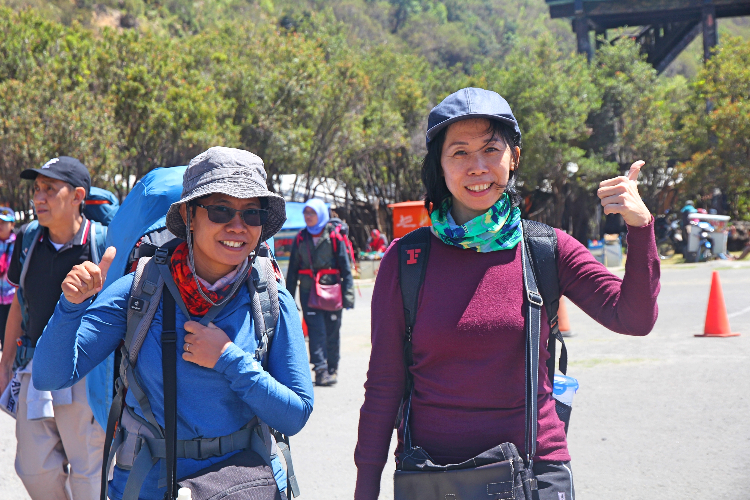Setelah puas berfoto-foto dan sarapan untuk bekal nanjak ke bumi perkemahan, kami pun mulai berkelompok untuk memulai perjalanan. Cuaca pagi itu begitu cerah dengan matahari bersinar hangat menyambut kami. Berbeda dengan gunung lain yang dari basecamp sudah mulai menanjak, Papandayan menawarkan jalur yang sangat landai. Saking landainya motor yang dimodifikasi layaknya motor trail itu bisa digunakan untuk membawa barang-barang ke atas.