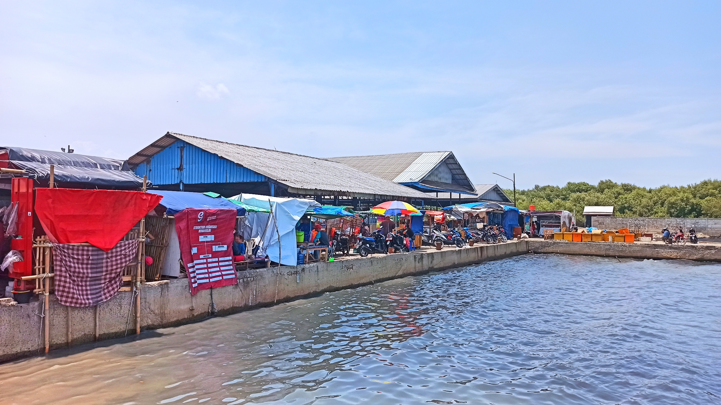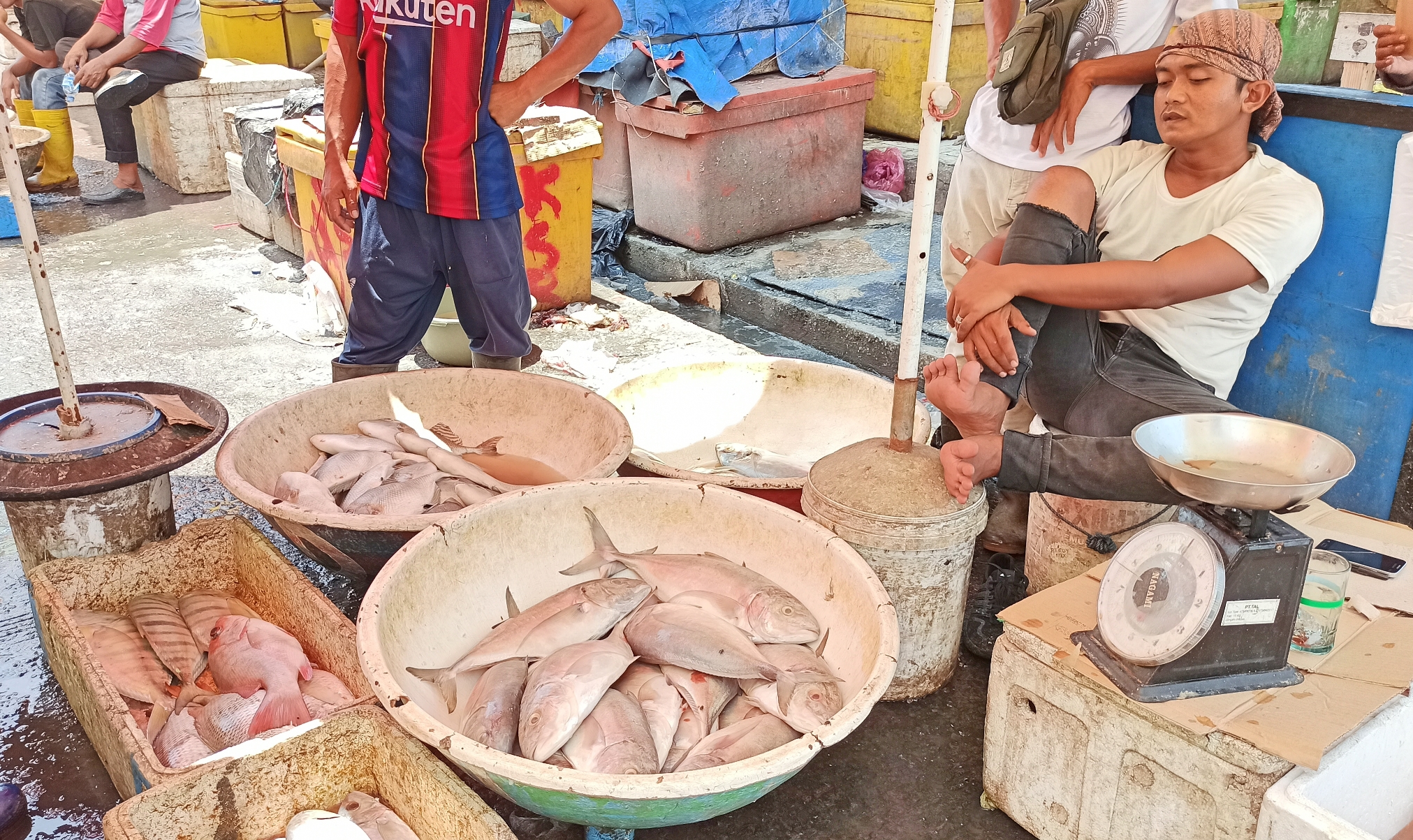 Di dekat Tempat Pelelangan Ikan, tepat di bibir pelabuhan, banyak orang berjualan makanan, minuman, dan mainan. Setelah puas menikmati udara segar laut dan mengambil beberapa foto, kami langsung membeli ikan laut untuk dimasak di rumah.