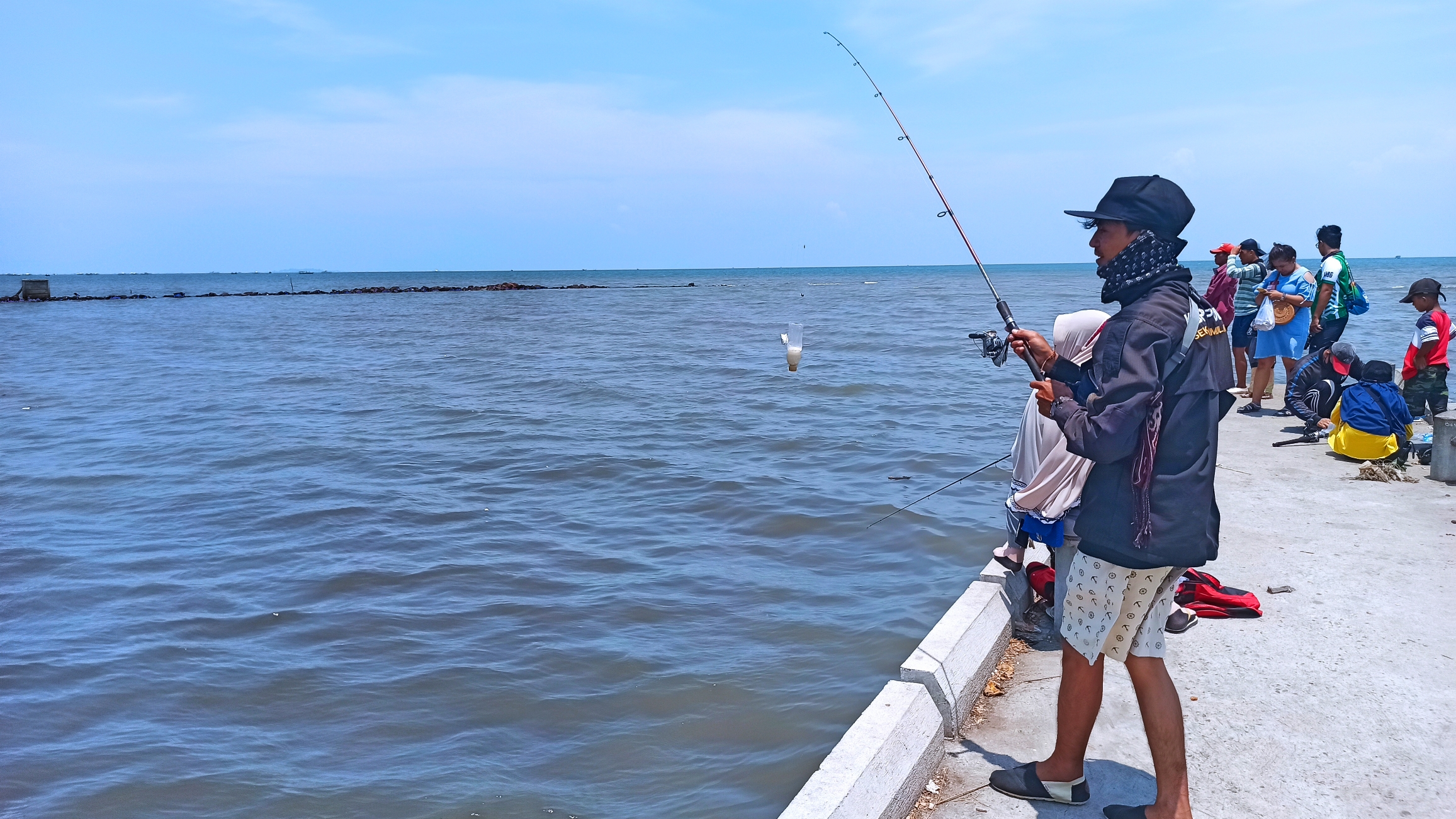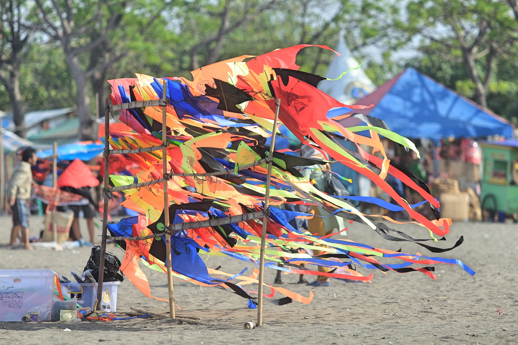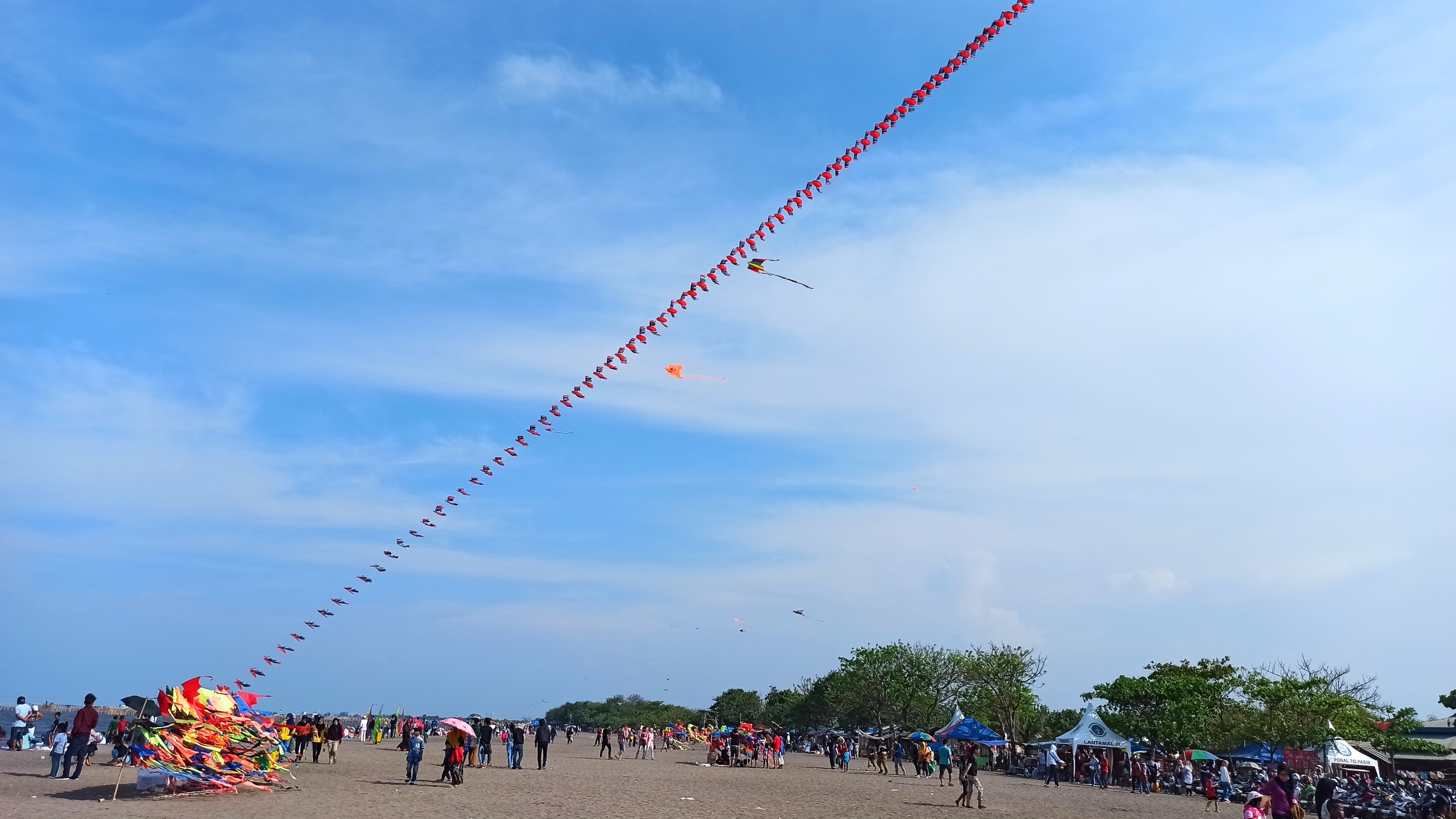 Ada pramuka sepertinya dari Saka Bahari berlatih di sisi kanan dengan perahu karetnya. Penjual layang-layang memamerkan layang-layang yang begitu berwarna-warni dan indah, bahkan ada yang sangat panjang menjulang tinggi ke angkasa.