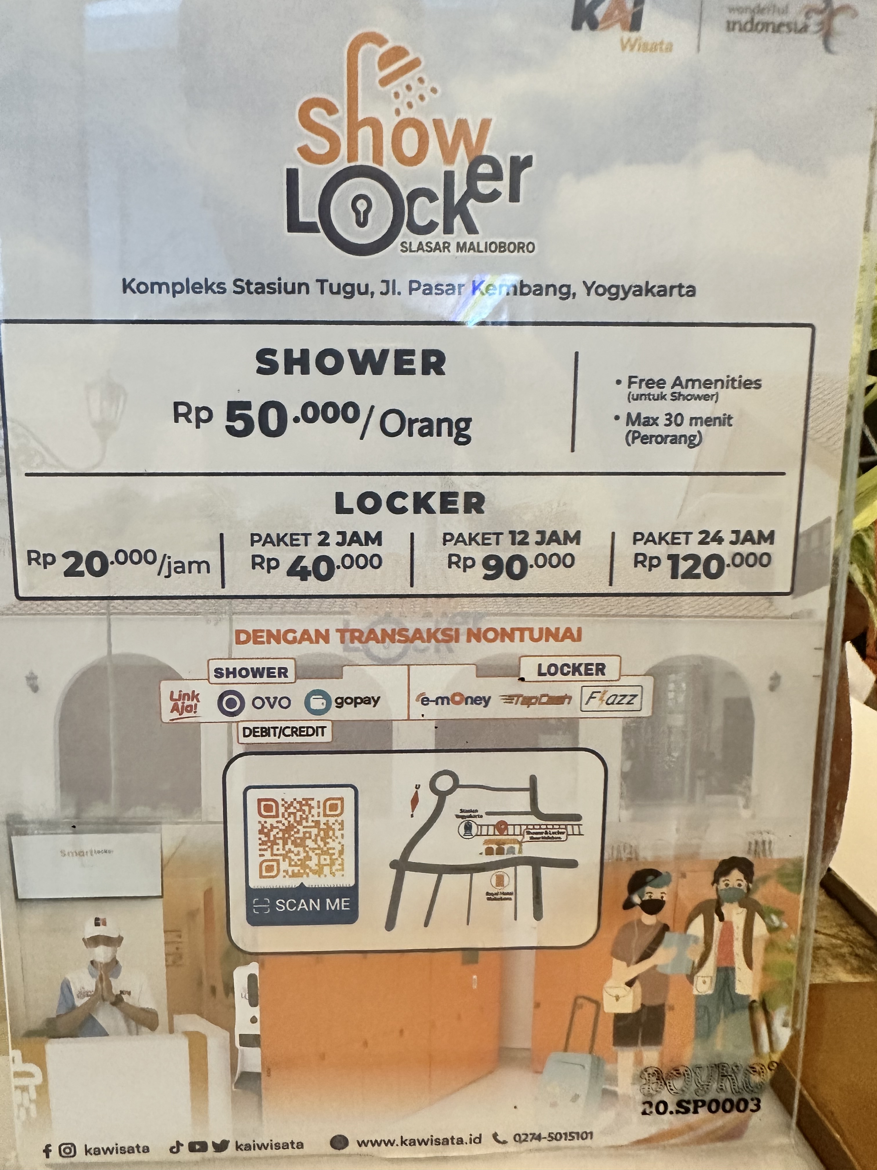 Sampai di Stasiun Tugu, saya merasa panas dan ingin mandi sebelum bertemu dengan Kakak Fasilitator dan Kakak Relawan lainnya. Untung ada fasilitas kamar mandi umum yang bersih dekat stasiun, Show Locker. Jadi buat kalian yang mau mandi atau menitip koper di dekat stasiun, tidak perlu repot untuk menginap di hotel jika memang hanya untuk transit sebentar. Di dekat Stasiun Gambir juga ada. Dengan biaya 50 rb, kita mendapat kamar mandi luas dengan shower, toilet, meja rias, pasta gigi dan sikat gigi, serta handuk bersih.