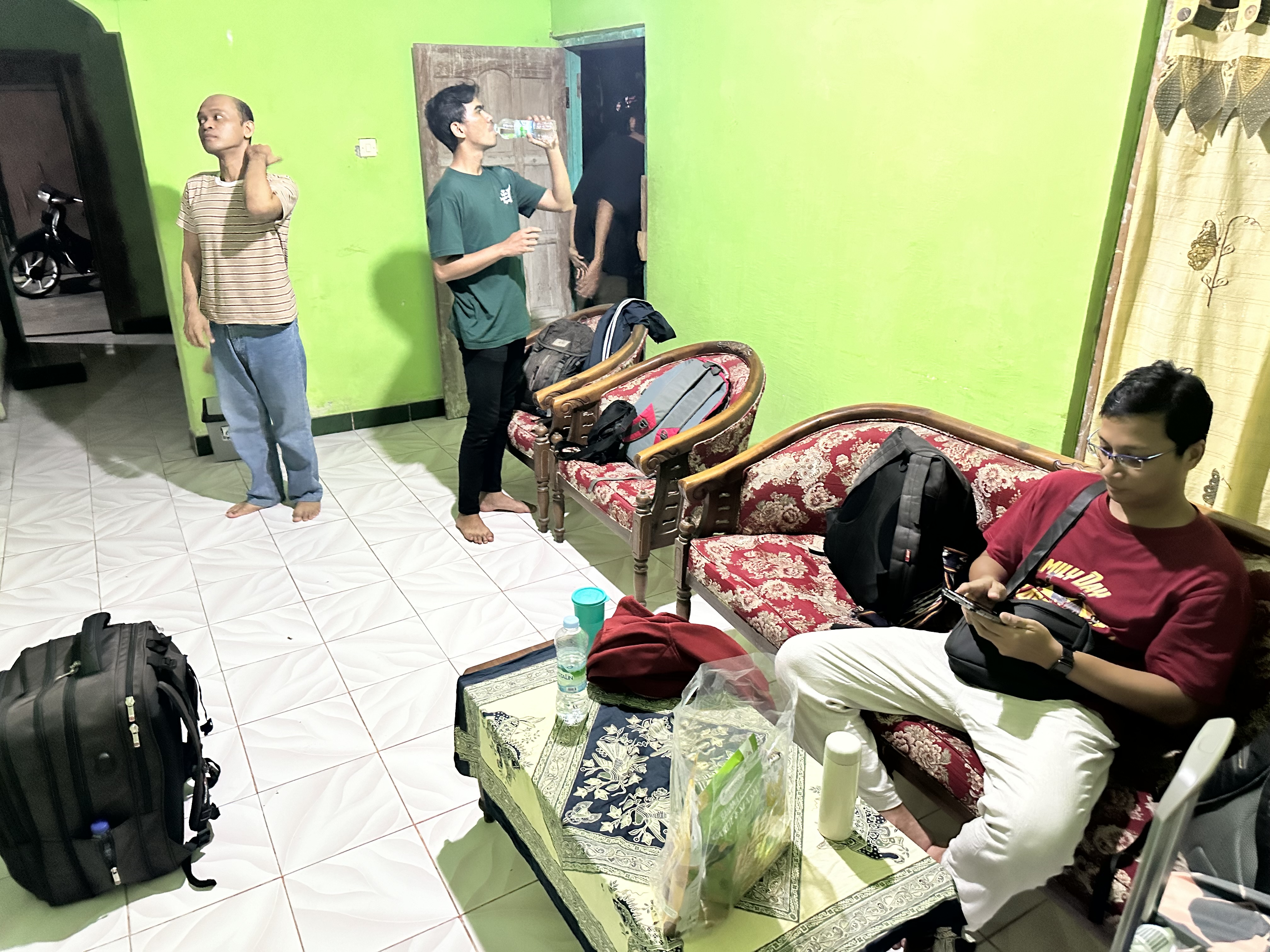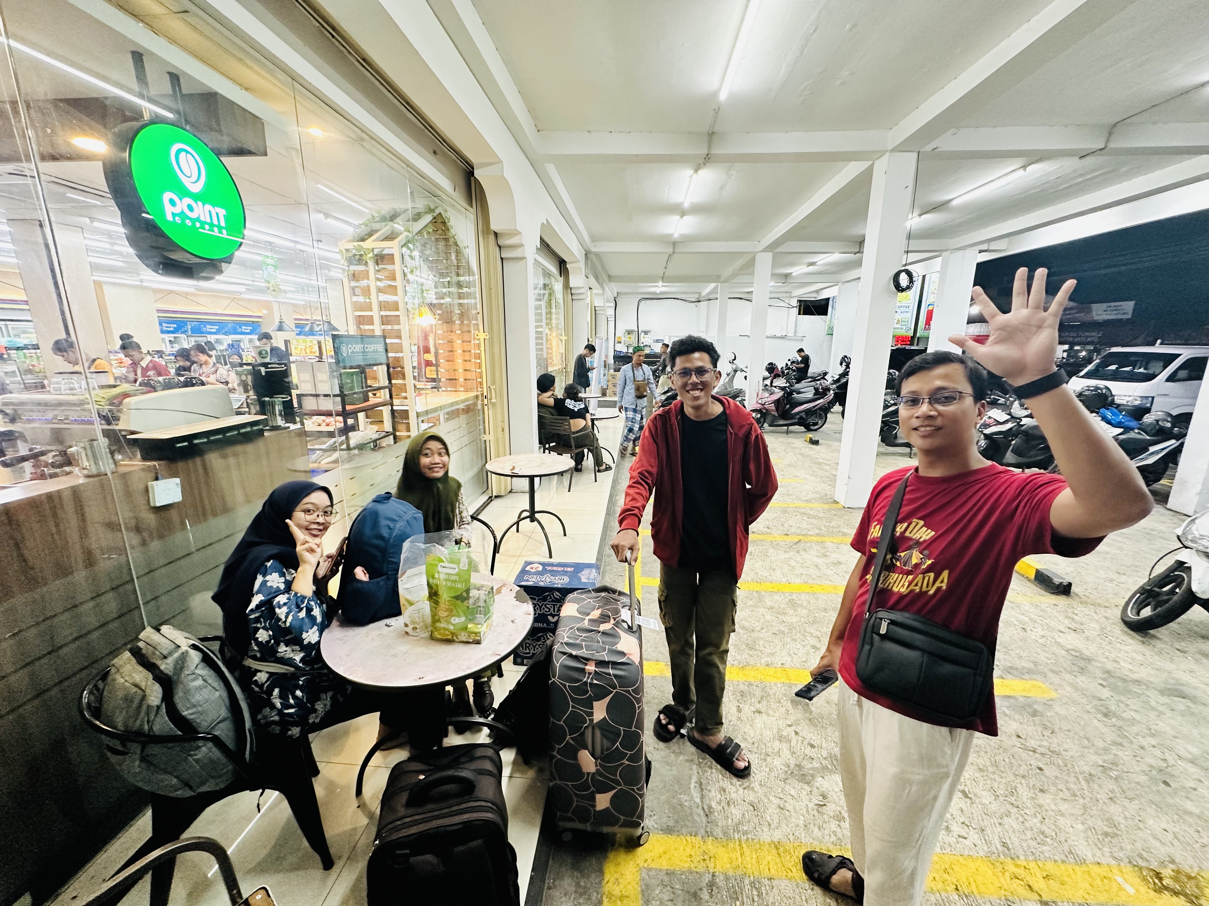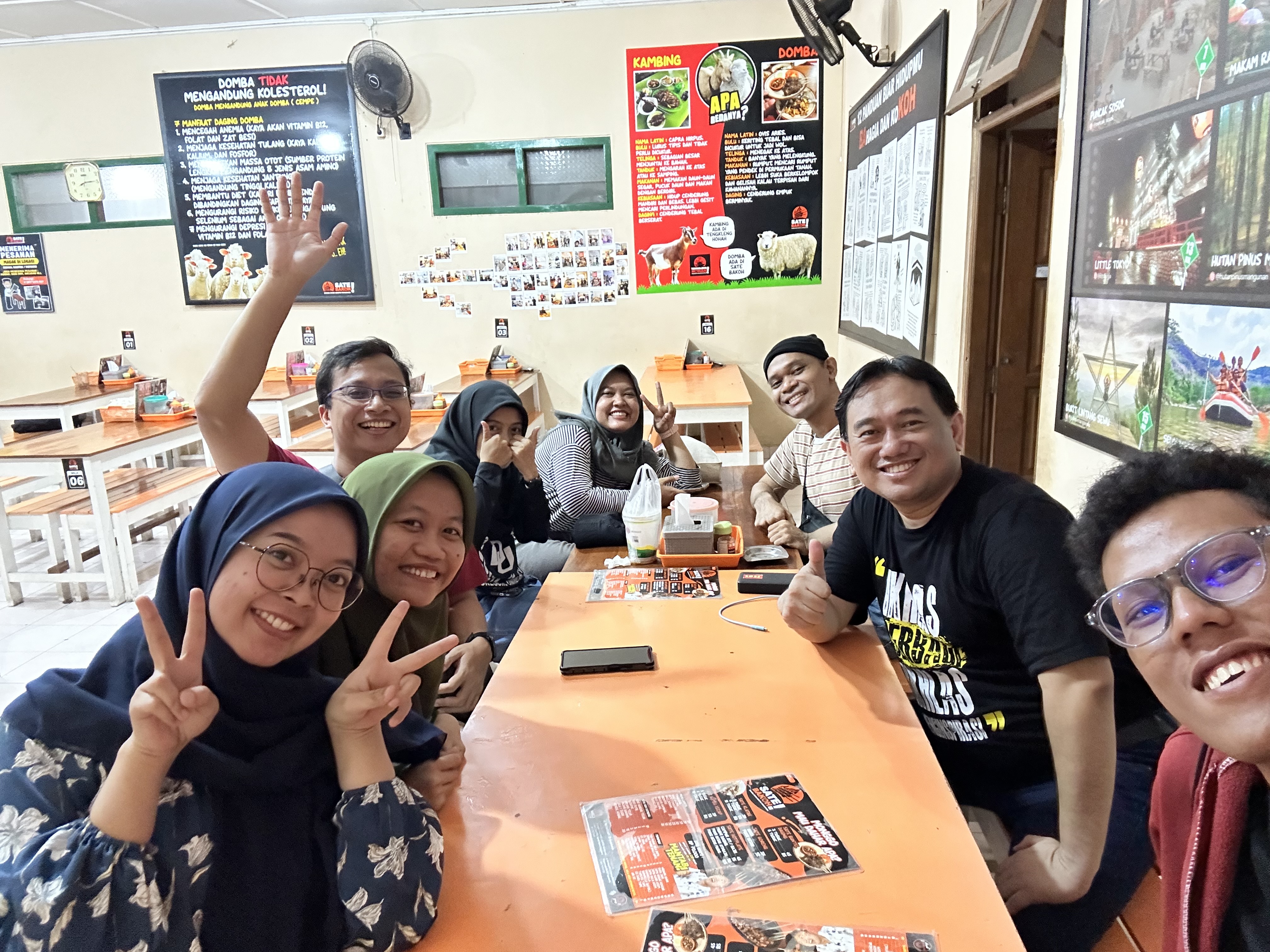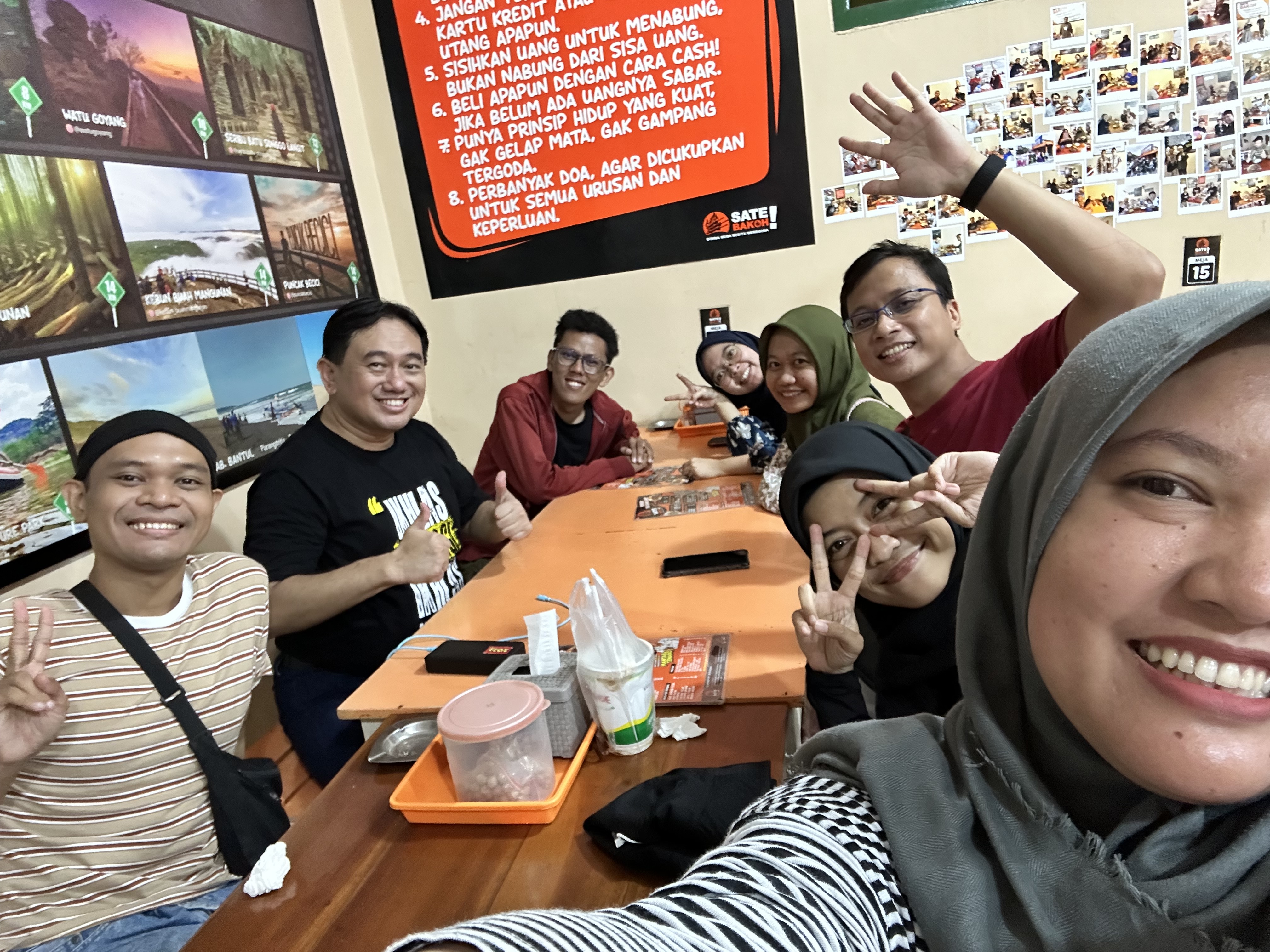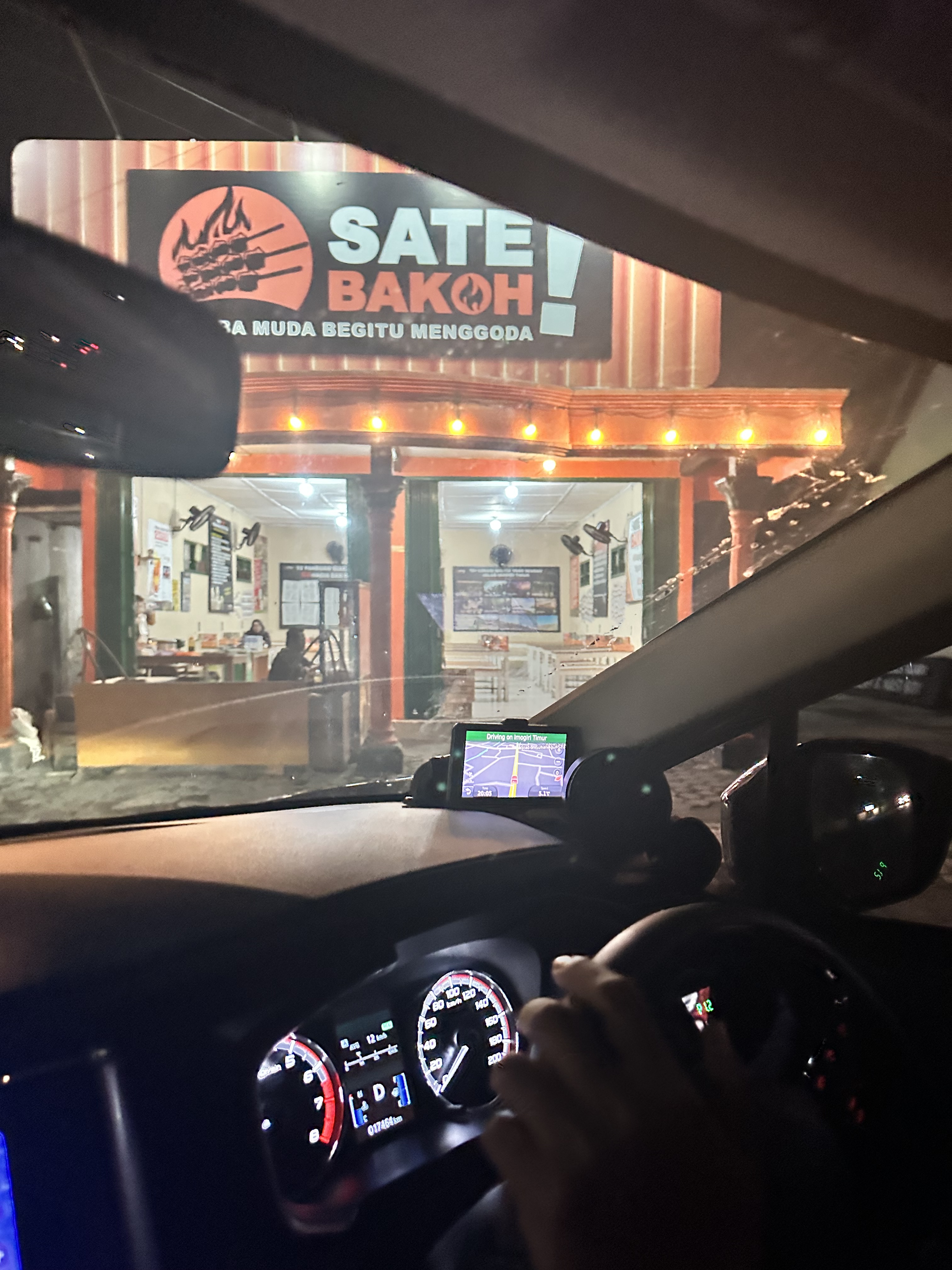 Dalam perjalanan kami tetap berkoordinasi dengan rekan relawan dan Kakak Fasil. Kak Dedy yang bekerja di Susu SGM bermaksud mengantarkan kami dengan mobilnya ke sekolah. Setelah berkumpul kami makan malam di sebuah warung Sate Klathak sebelum menuju SD Muhammadiyah Kalinampu 2, Bantul.