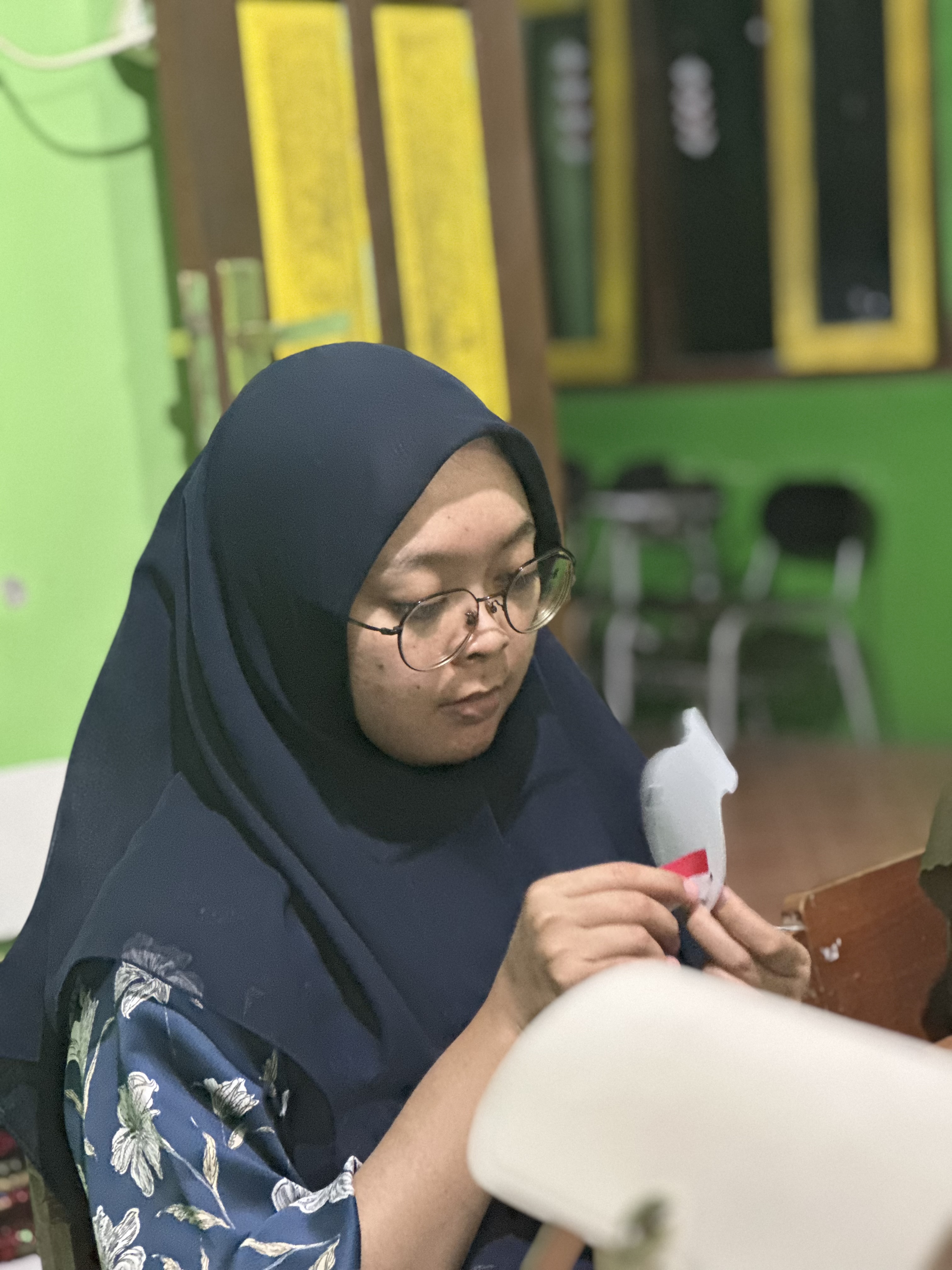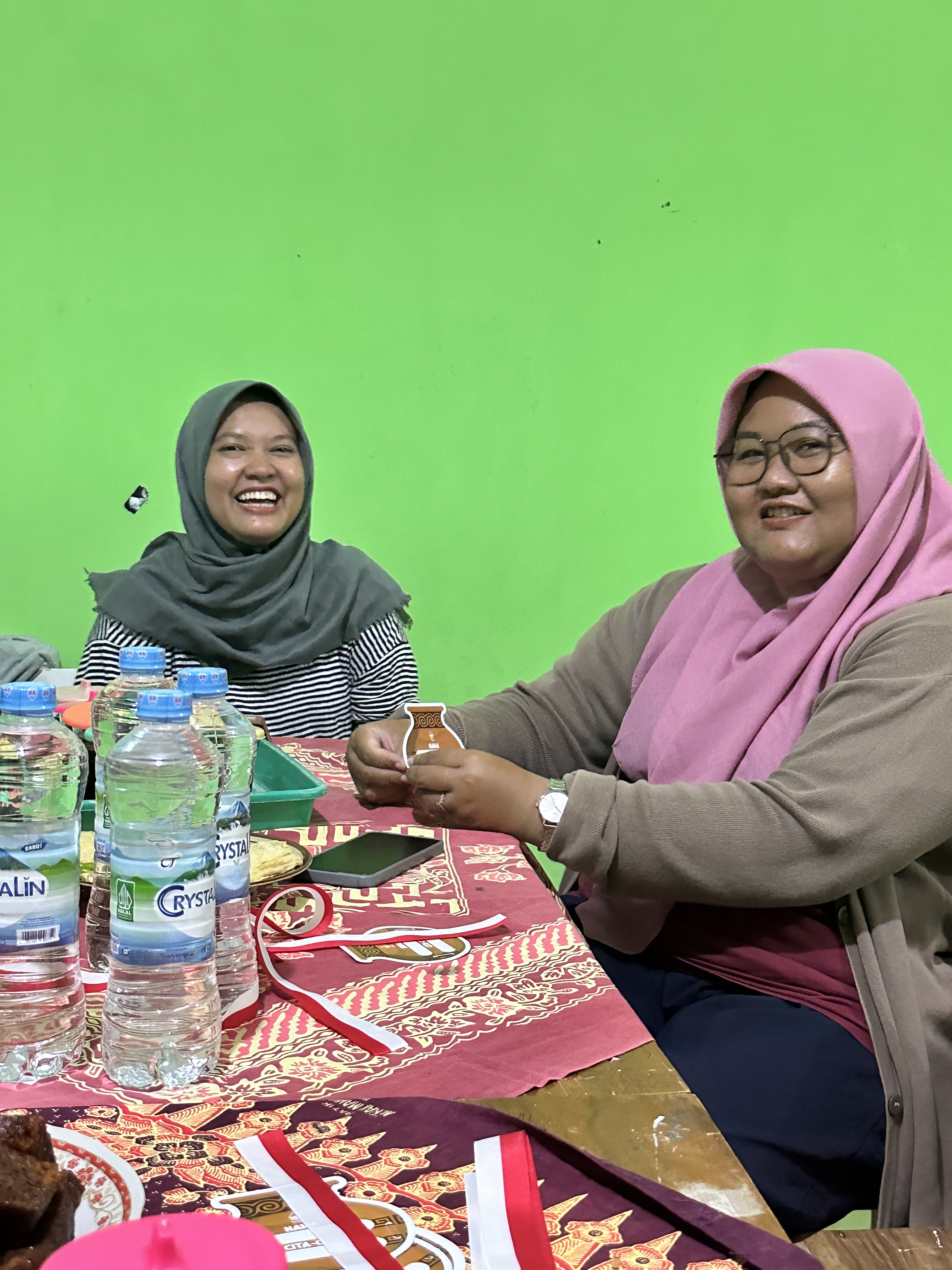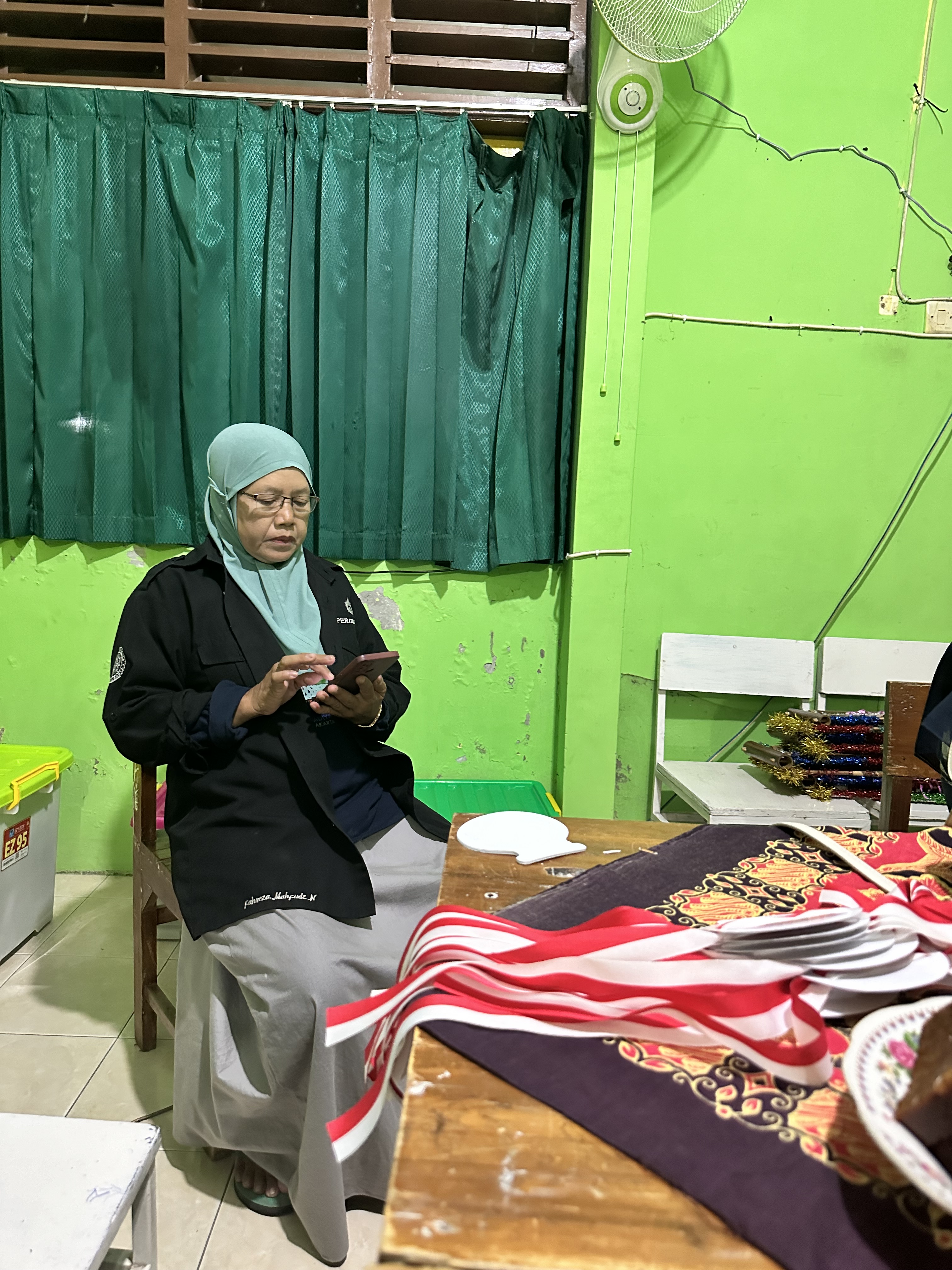 Sampai di sekolah sekitar pukul 9 malam. Setelah sholat, kami disambut Ibu Kepala Sekolah, Bu Partini, yang rumahnya tidak begitu jauh dari sekolah. Kami menyiapkan pita untuk head piece yang akan dipakai adik-adik rombel besok di ruang komputer yang ada di sekolah.