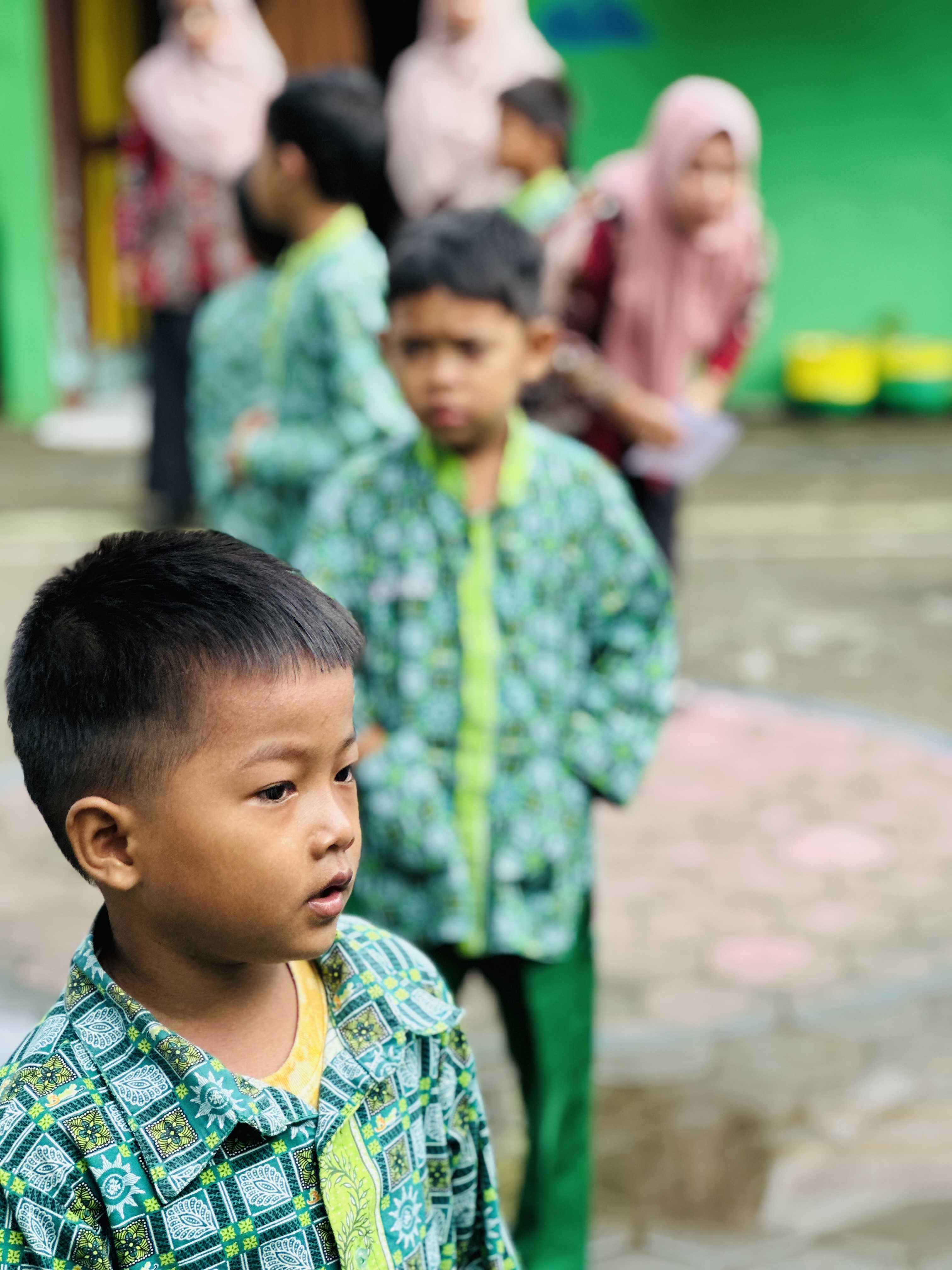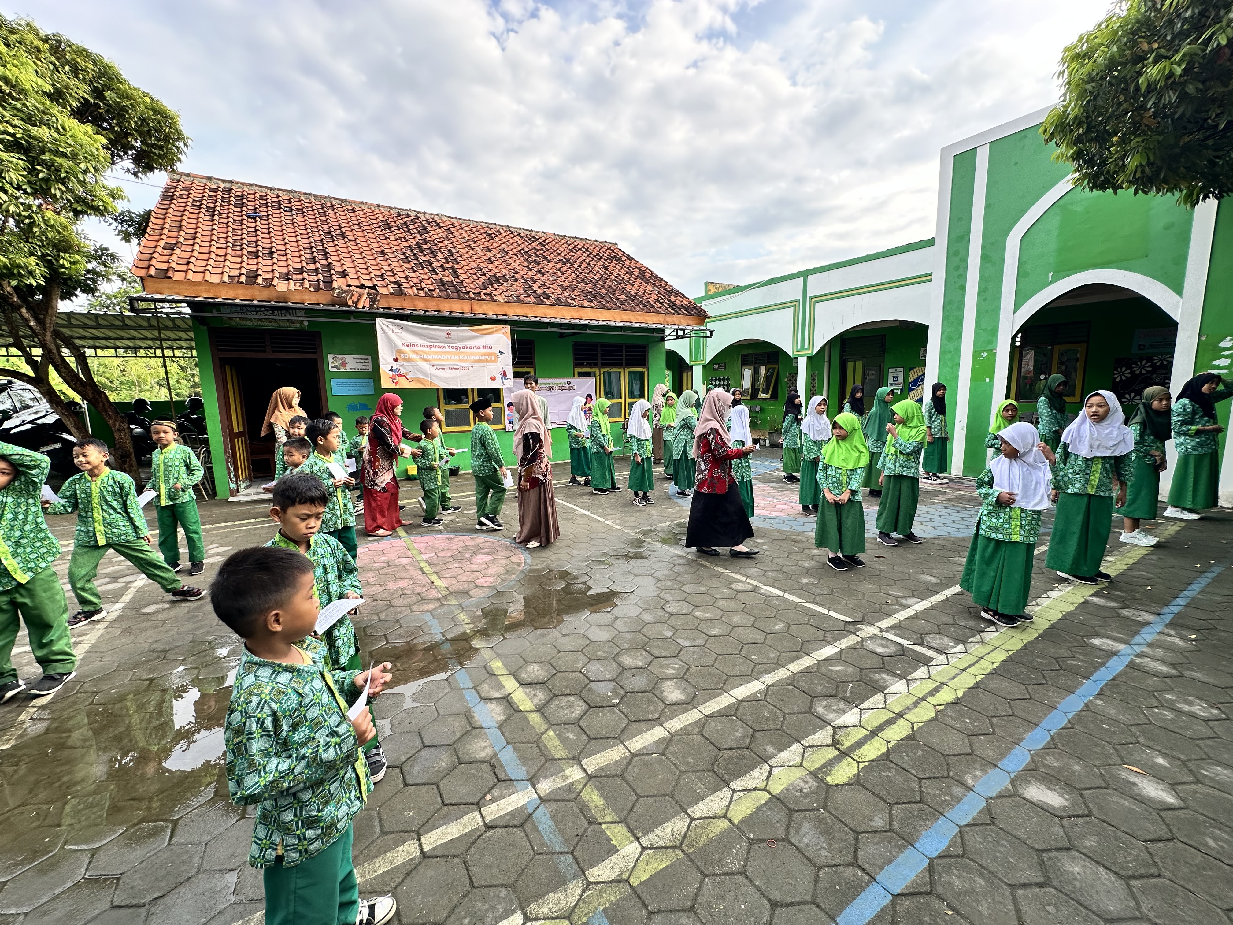 Pagi telah tiba. Setelah mandi, sholat subuh, dan sarapan, kamipun bergegas menuju sekolah. Tak sabar kami untuk bertemu dan mengajar adik-adik rombel SD Muhammadiyah Kalinampu 2. Wajah mereka begitu penuh rasa keingintahuan melihat kami di sekolah. Kepala Sekolah dan para Ibu Guru menyambut kami dengan hangat. Saya mengambil video aerial dengan menggunakan drone yang saya bawa untuk menambah kuat cerita yang akan dirajut di video akhir nanti.