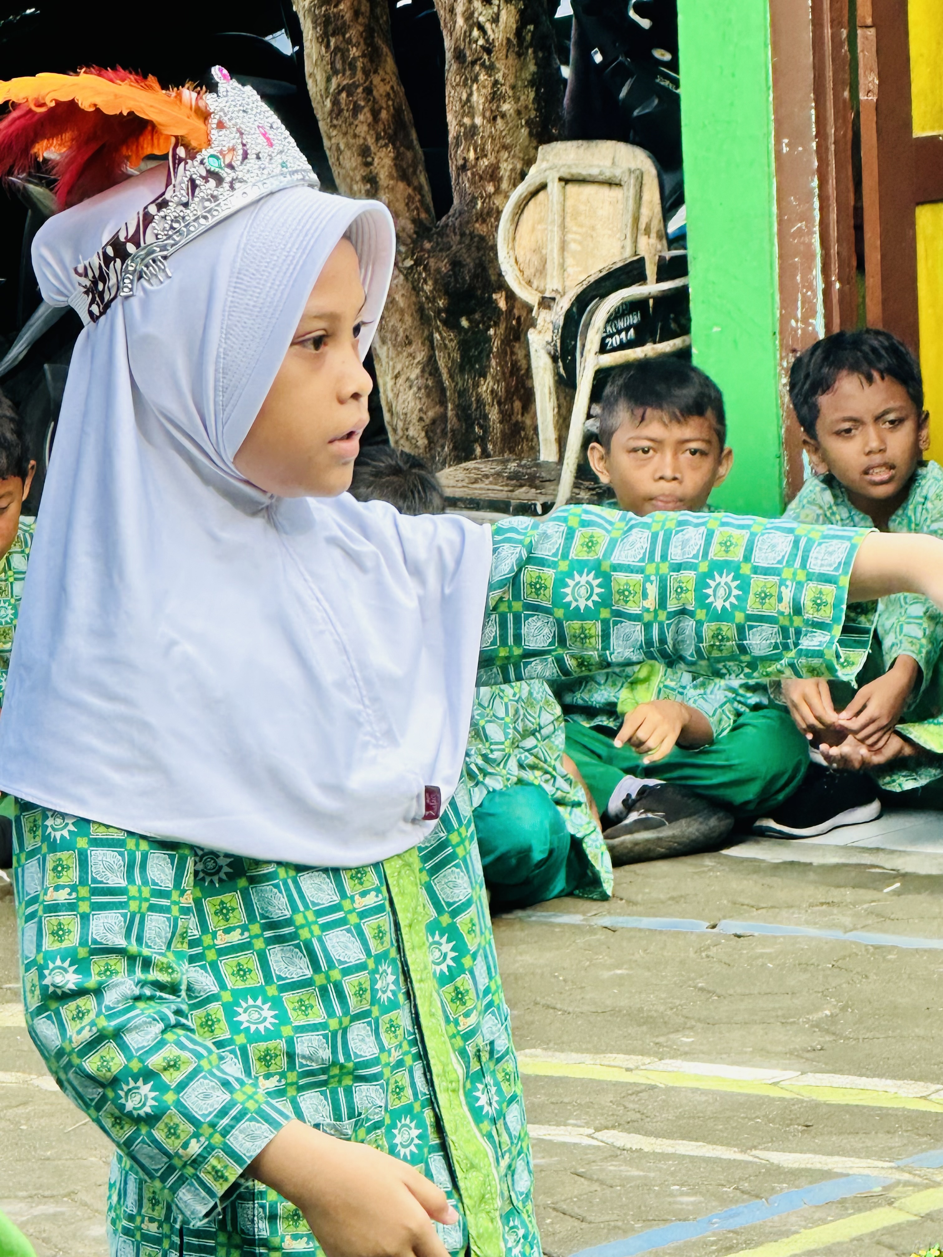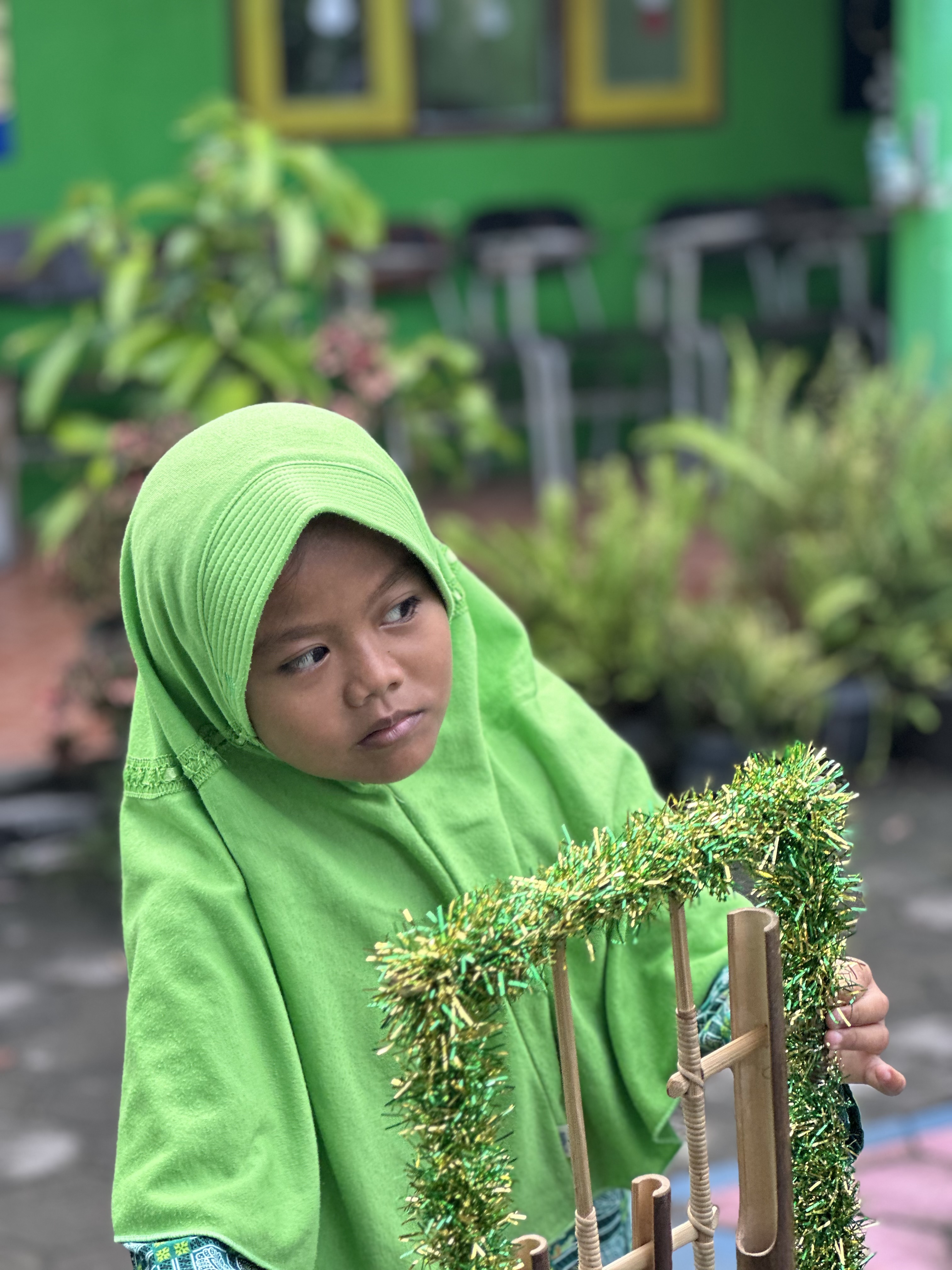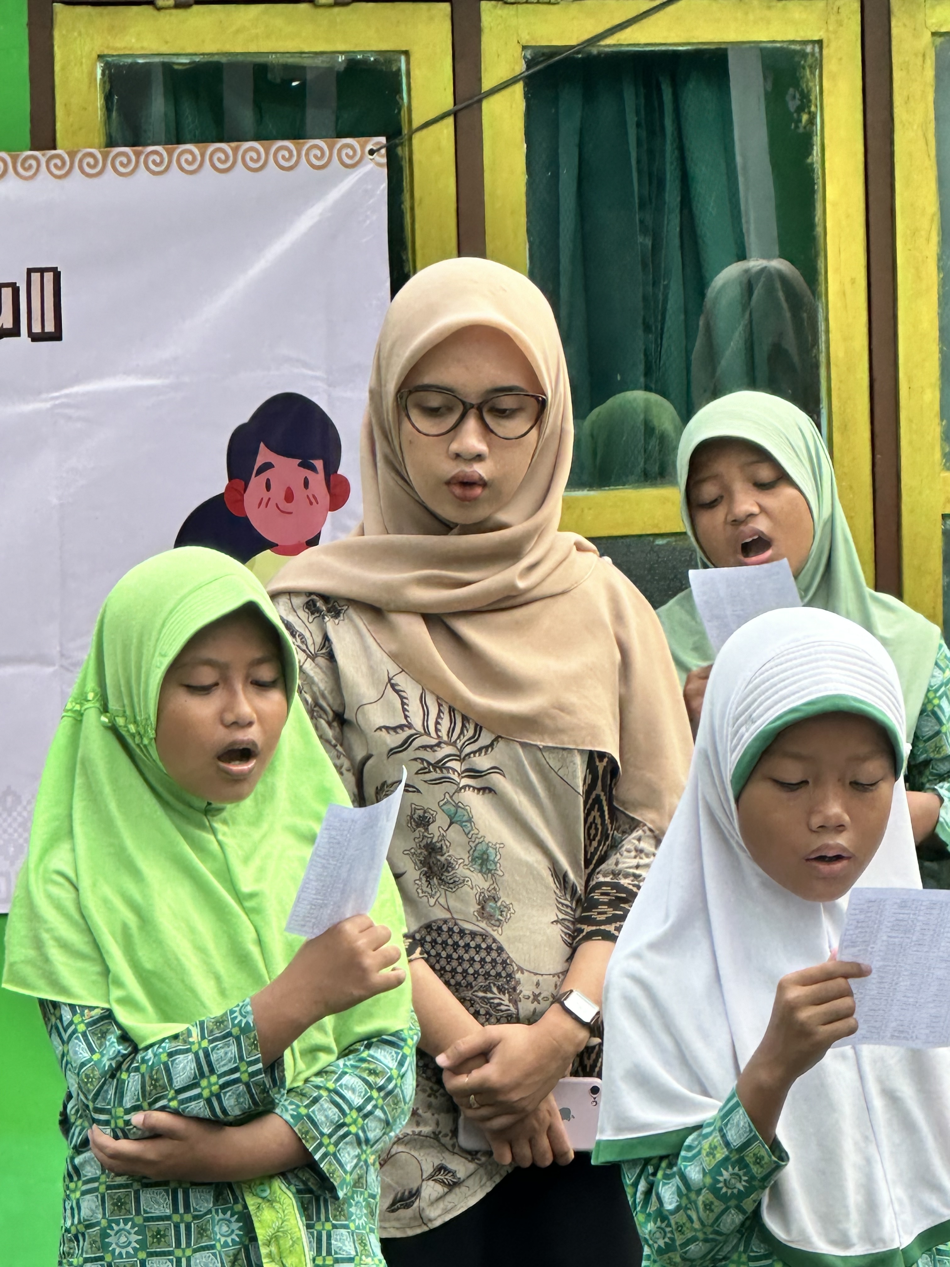 Adik-adik rombel mengawali belajar dengan sholat dhuha di masjid dekat sekolah dan dilanjutkan muroja’ah Surat Al Kahfi dan menghapalkan asmaul husna. Setelah itu mereka menampilkan peragaan angklung yang sempat memberikan mereka prestasi juara 3 di perlombaan sebelumnya.
