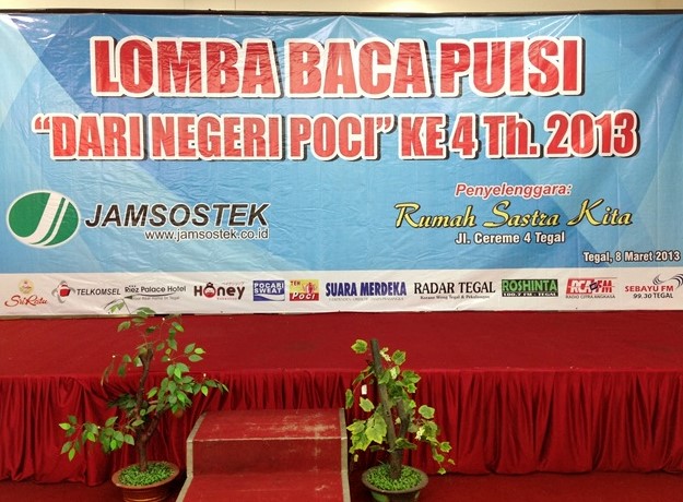 Berikut ini adalah foto-foto final Lomba Baca Puisi Dari Negeri Poci 4 dan Peluncuran Antologi Puisi Negeri Abal-abal di Pendopo Kota Tegal 10 Maret 2013 lalu. Dalam bentuk slideshow: [slideshow]